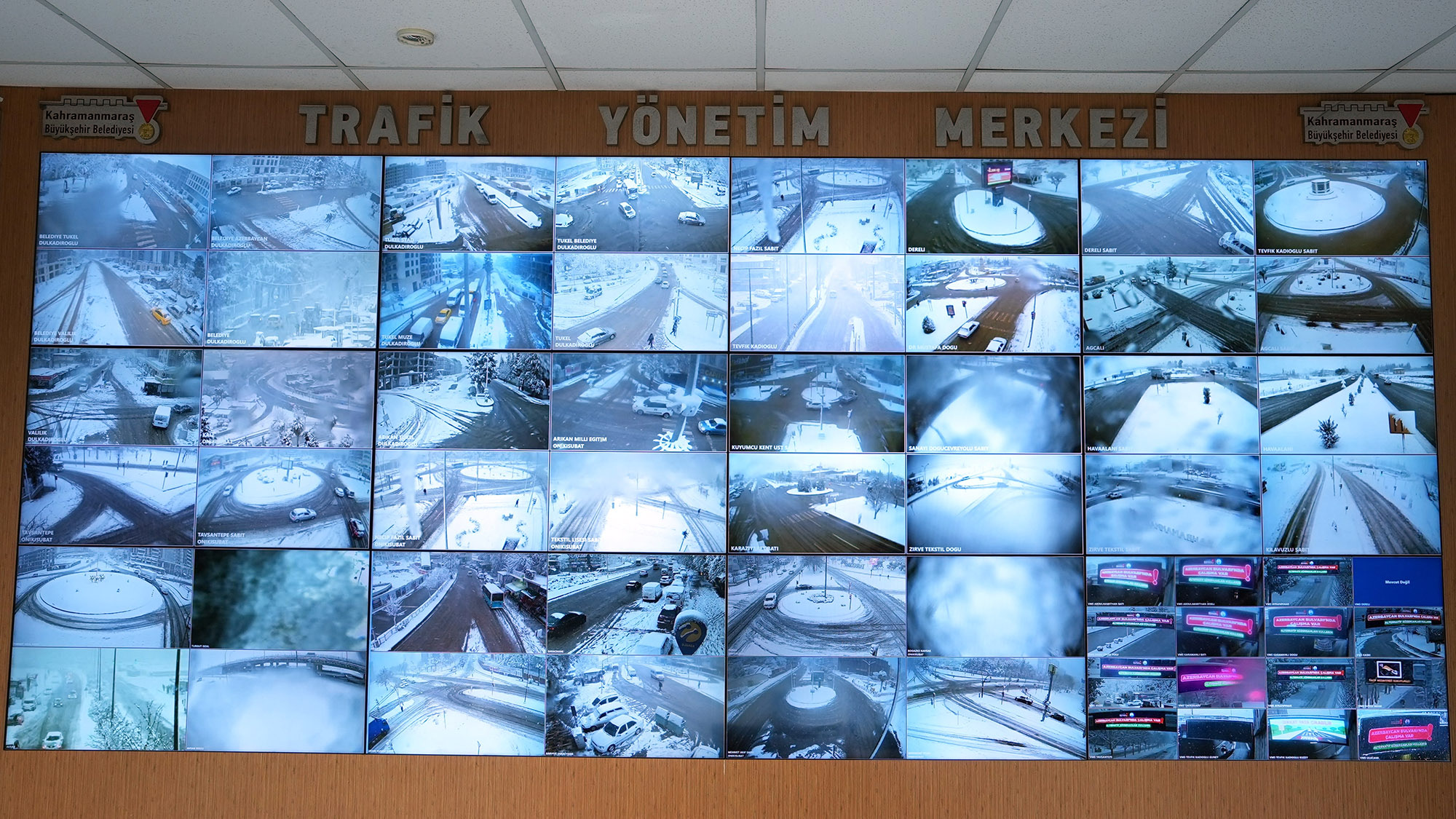 Kahramanmaraş Büyükşehir Belediyesi, gece saatlerinde başlayan ve şehir genelinde etkili olan yoğun kar yağışının ardından ulaşımda herhangi bir aksama yaşanmaması adına tüm birimleriyle sahada çalışmalarını aralıksız sürdürüyor.Başta ana arterler olmak üzere bulvarlar, kavşaklar, cadde ve sokaklarda kar küreme, tuzlama ve solüsyon uygulamaları yoğun bir şekilde devam ederken, yol durumu Büyükşehir Belediyesi Trafik Yönetim Merkezi tarafından anbean takip ediliyor. 11 ilçeyi kapsayan kamera ağıyla çalışan Trafik Yönetim Merkezi, şehir genelindeki trafik akışını ve yol durumunu anlık olarak izliyor. Merkez; sahadaki karla mücadele ekipleri ve Meteoroloji Genel Müdürlüğü ile koordineli şekilde çalışarak, yağışın yoğunlaştığı ve trafik akışının yavaşladığı bölgeleri tespit ediyor. Farklı noktalarda konumlandırılan şehir kameraları aracılığıyla hem kar yağışının seyri hem de araç yoğunluğu eş zamanlı olarak takip edilirken, ihtiyaç duyulan noktalara ekip ve ekipman yönlendirmesi hızlı bir şekilde gerçekleştiriliyor.
