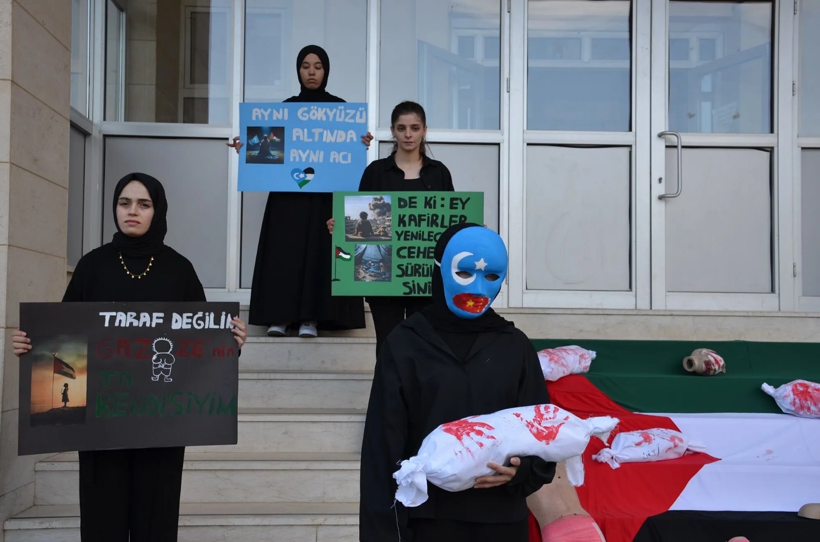Kahramanmaraş Sütçü İmam Üniversitesi (KSÜ) Afşin Sağlık Yüksekokulu öğrencileri, Filistin ve Doğu Türkistan’da yaşanan insanlık dramına dikkat çekmek amacıyla anlamlı bir etkinlik gerçekleştirdi.