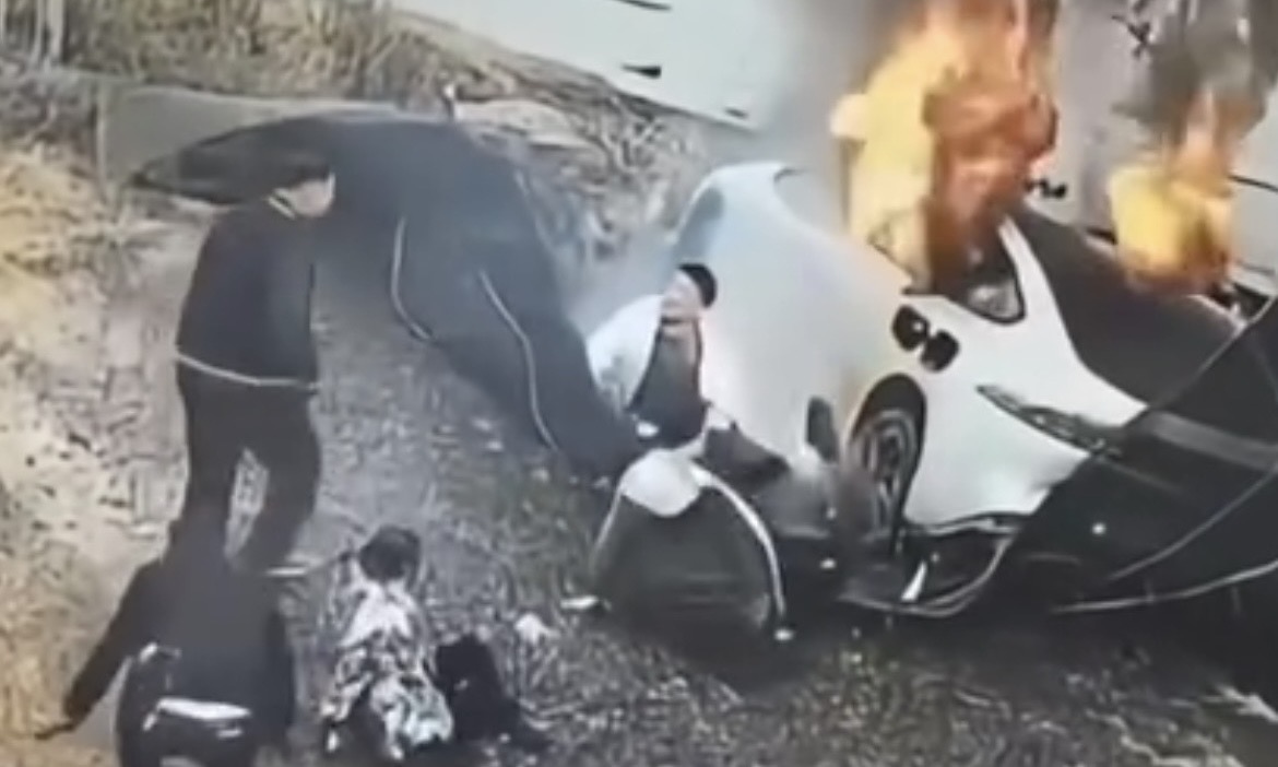 Görüntülerde, otomobilin arka bölümünün tamamen alevlere teslim olduğu sırada içeride kalan son iki kişinin yoğun çabalar sonucu araçtan çıkarıldığı anlar dikkat çekti. Yaralılar güvenli alana alındıktan yalnızca saniyeler sonra araç tamamen yanarak kullanılamaz hale geldi.