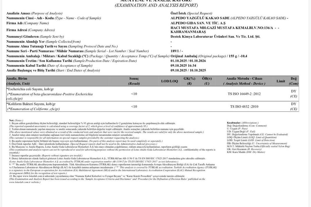 Bayır ayrıca, Bakanlık onaylı akredite laboratuvarlarda yapılan ikinci testlerin kendi analizleriyle birebir örtüştüğünü vurgulayarak, “Ürünlerimiz bu doğrulama sonrası ihraç edilmiş, gittiği ülkelerde de analizlerden başarıyla geçmiştir. Alpedo’nun üretim standartları her zaman en üst düzeydedir.” dedi.