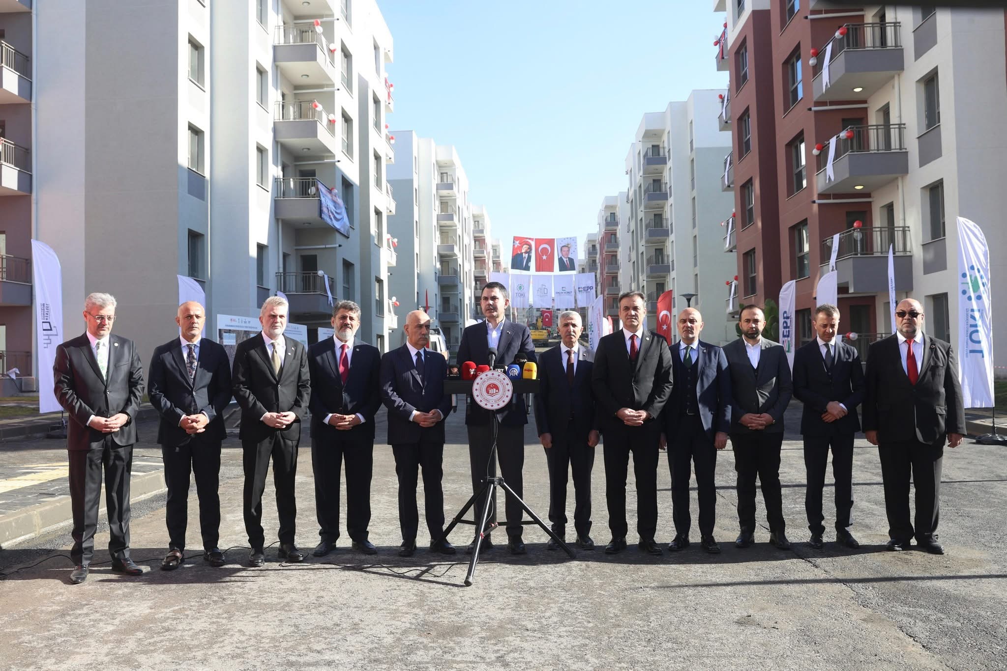 “11 deprem ilinde 174 alanda, 3 bin 481 şantiyede, 200 bin emekçi ile gece gündüz çalışıyoruz. Bugün artık son tuğlalar koyuluyor, son çiviler çakılıyor. Milletimizle omuz omuza yürütülen bu süreç tam bir devlet–millet dayanışmasıdır.”