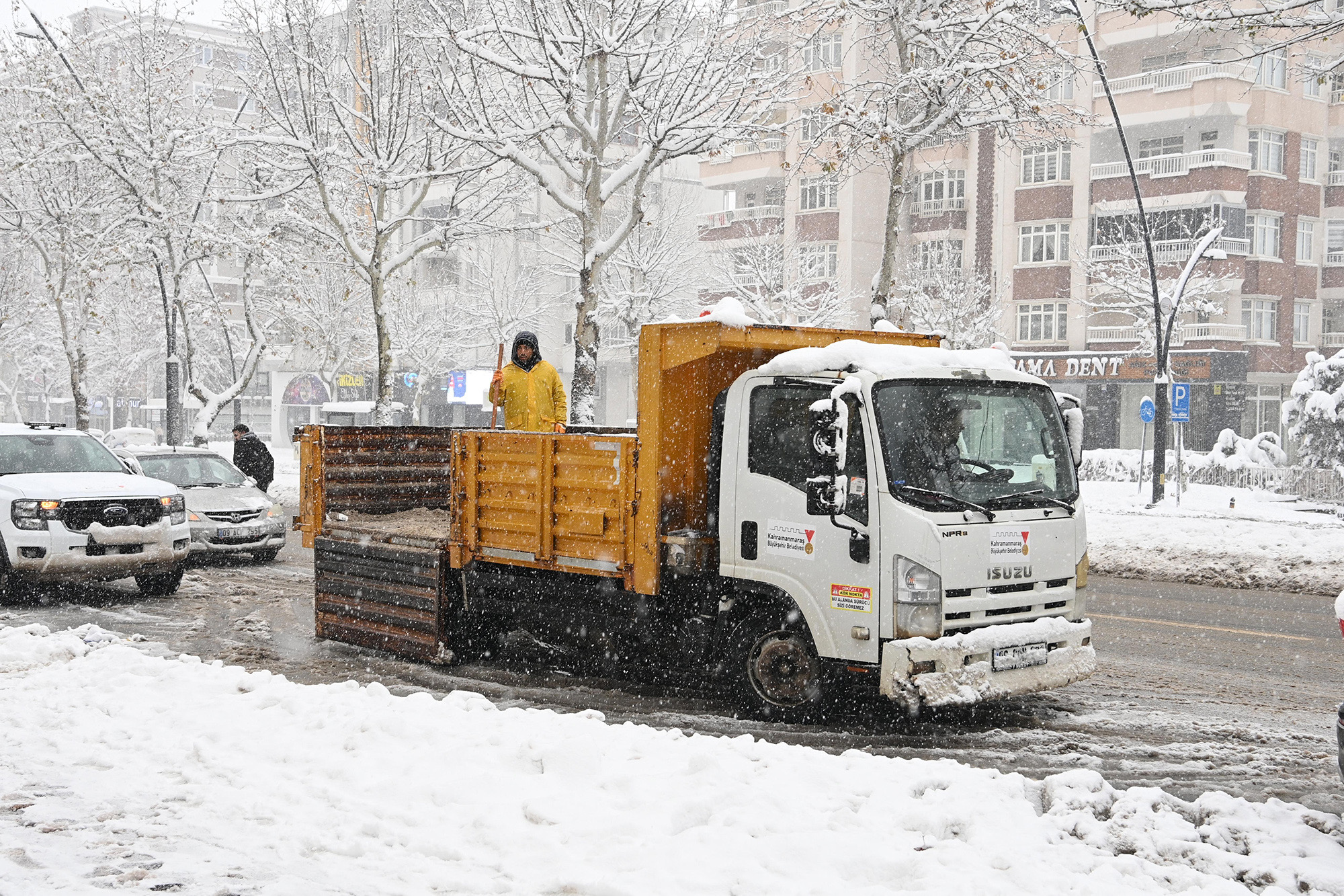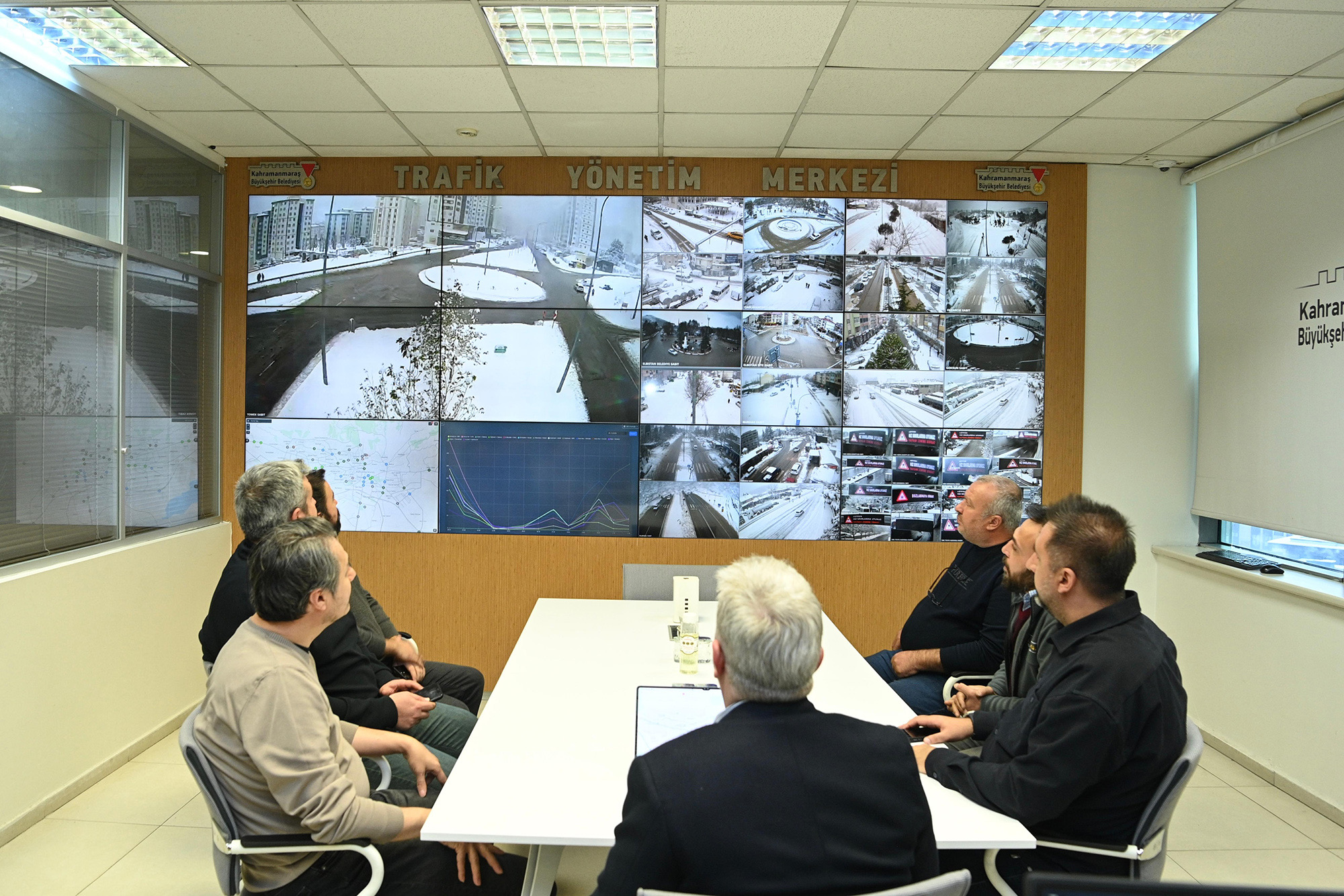 Kahramanmaraş Büyükşehir Belediyesi, şehir genelinde etkisini sürdüren yoğun kar yağışının ulaşımı ve günlük yaşamı olumsuz etkilememesi için sahadaki çalışmalarını aralıksız sürdürüyor. Gece saatlerinden itibaren tüm birimleriyle teyakkuz halinde olan Büyükşehir Belediyesi, kar küreme, tuzlama ve solisyon uygulamalarıyla ana arterler başta olmak üzere cadde, sokak ve bulvarları ulaşıma açık tutuyor. Karla mücadele çalışmalarını yakından takip eden Büyükşehir Belediye Başkanı Fırat Görgel, ilk olarak Trafik Yönetim Merkezi’ni ziyaret etti. Başkan Görgel, şehir merkezi ve ilçelerdeki yol durumunu 264 kameradan canlı olarak izleyerek sahada görev yapan ekiplerin çalışmalarına ilişkin detaylı bilgiler aldı.