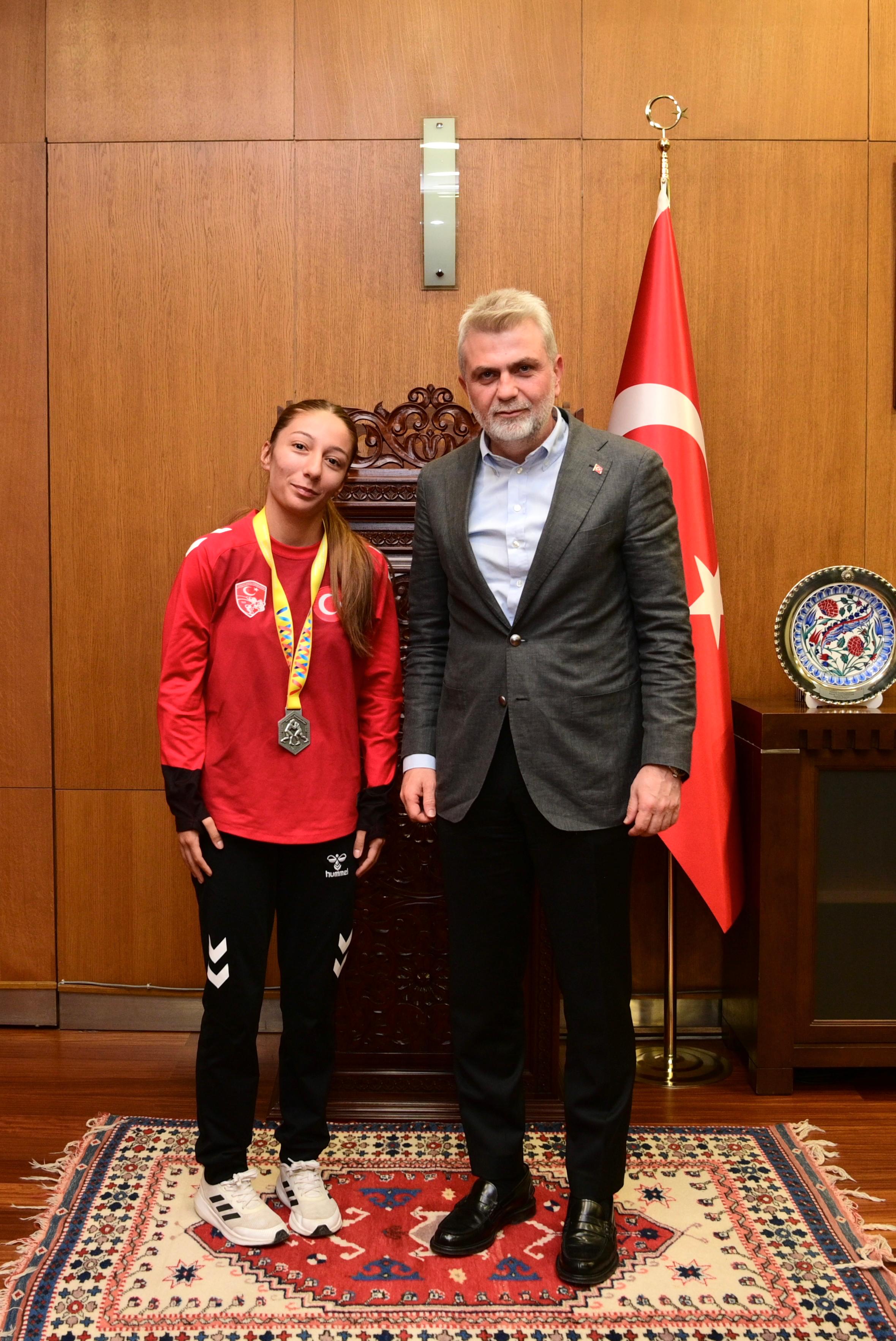 Romanya’da düzenlenen U17 Güreş Balkan Şampiyonası’nda büyük bir başarıya imza atarak Türkiye ve Kahramanmaraş’a gurur yaşatan Şamil Şahan, Hatice Kazmacı ve İbrahim Bera Kıvrak’ı makamında ağırlayan Başkan Görgel, sporcuları tek tek tebrik ederek başarılarından büyük mutluluk duyduklarını ifade etti.