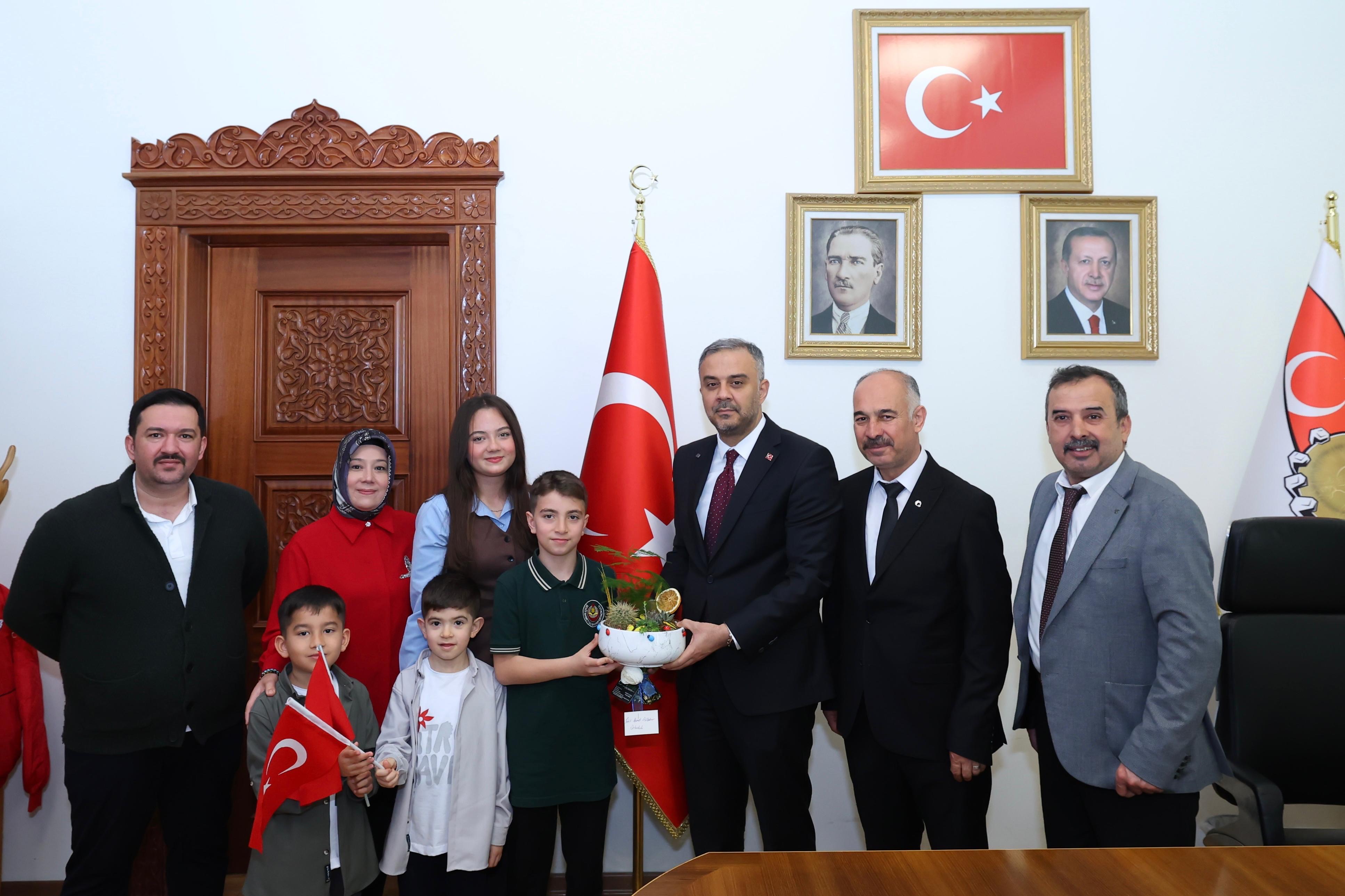 Onikişubat Belediye Başkanı Hanifi Toptaş, makam koltuğunu Şehit Ahmet Gülbahar Ortaokulu 5’nci sınıf öğrencisi Halil Sami Kulotu’ya devretti.