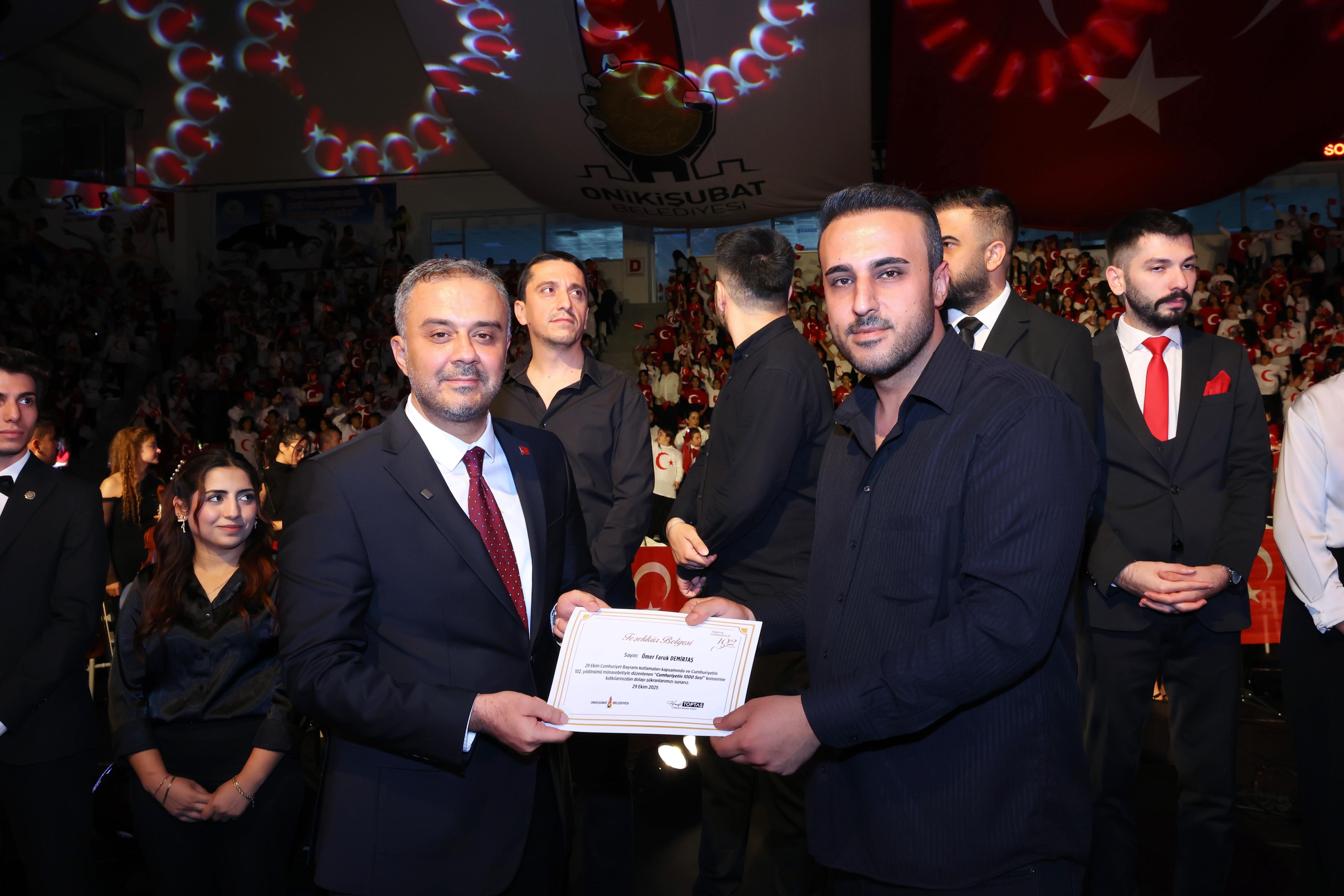 Toptaş, Kahramanmaraş’ın Kurtuluş Savaşı’ndaki tarihi rolüne de değinerek şu sözleri ekledi: “Kahramanmaraş, bağımsızlık uğruna canını ortaya koymuş, destan yazmış bir şehir olarak Cumhuriyet’in değerlerini en derinden hisseden şehirlerin başında gelir. Bizler, o kahraman ecdadın torunları olarak bugün bu salonda onların emanetine sahip çıkıyoruz. Cumhuriyetimizin ikinci yüzyılına adım atarken, OnikişubatBelediyesi olarak sadece fiziki hizmetlerde değil; kültür, sanat ve eğitim alanlarında da güçlü bir gelecek inşa etmek için çalışıyoruz. Çünkü inanıyoruz ki Cumhuriyet; ancak sanatla, bilgiyle, kültürle ve ortak değerlerle daha da güçlenir.”