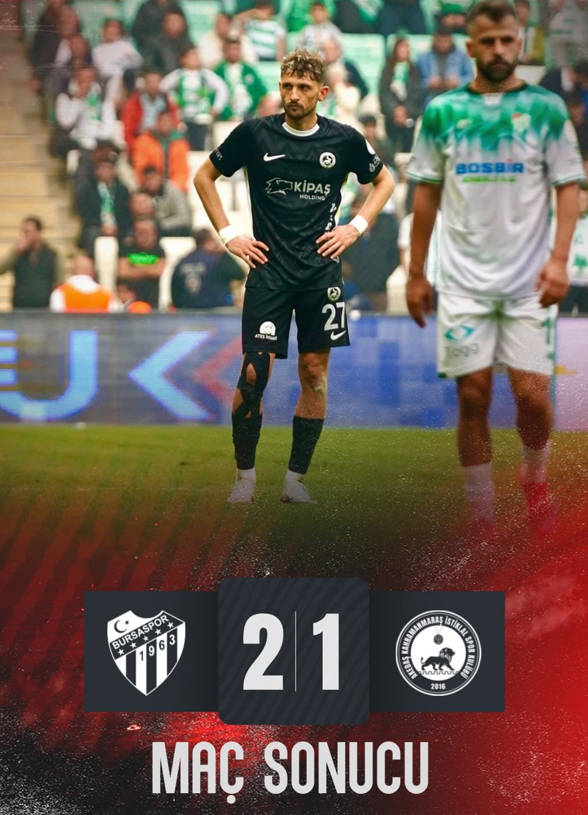 Nesine.com 2. Lig’in 11. haftasında Akedaş Kahramanmaraş İstiklal, deplasmanda güçlü rakibi Bursaspor’a 2-1 mağlup oldu.