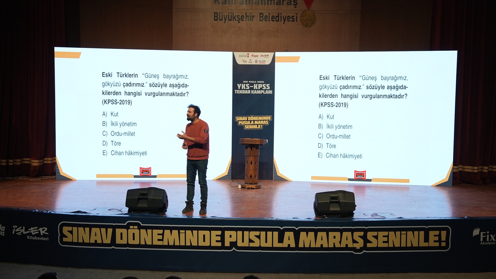 Genç dostu projeleriyle öne çıkan Kahramanmaraş Büyükşehir Belediyesi, eğitim alanındaki desteklerine bir yenisini daha ekleyerek Kamu Personeli Seçme Sınavı’na (KPSS) hazırlanan gençleri kapsamlı bir kampta buluşturdu. Başkan Fırat Görgel öncülüğünde hayata geçirilen çalışma, gençlerin akademik ve mesleki hedeflerine ulaşmalarına önemli katkı sağladı. Büyükşehir Belediyesinin gençlik markası Pusula Maraş koordinesinde, Mehmet Akif Ersoy Kültür Merkezi’nde düzenlenen KPSS Kampı’nda Türkiye’nin alanında uzman eğitimcileri, KPSS’ye hazırlanan adaylarla bir araya geldi. Yoğun katılımla gerçekleştirilen kampta gençler hem ders tekrarları yaptı hem de sınav sürecine ilişkin kritik bilgiler edindi.