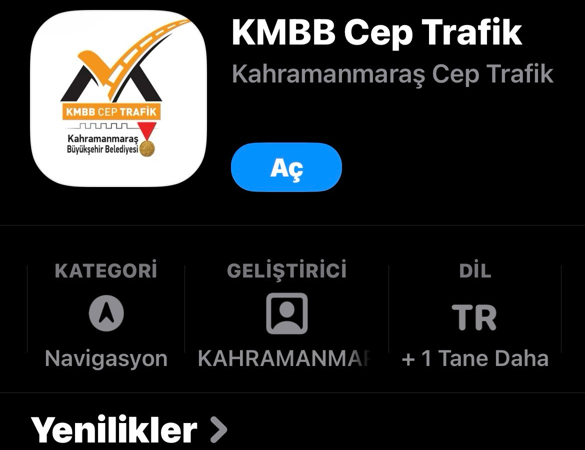 Büyükşehir Belediyesi tarafından yapılan açıklamada, vatandaşların ulaşım planlamalarını kolaylıkla yapabilmeleri adına dijital bilgilendirme ağlarının düzenli olarak takip edilmesi gerektiği vurgulandı. Açıklamada, KMBB Cep Trafik uygulamasının Android cihazlarda https://play.google.com/store/apps/details?id=com.trafik.online.kahramanmaras&hl=tr, IOS cihazlarda ise https://apps.apple.com/tr/app/kmbb-cep-trafik/id1624293025 bağlantısından ücretsiz olarak indirilebileceği belirtildi.