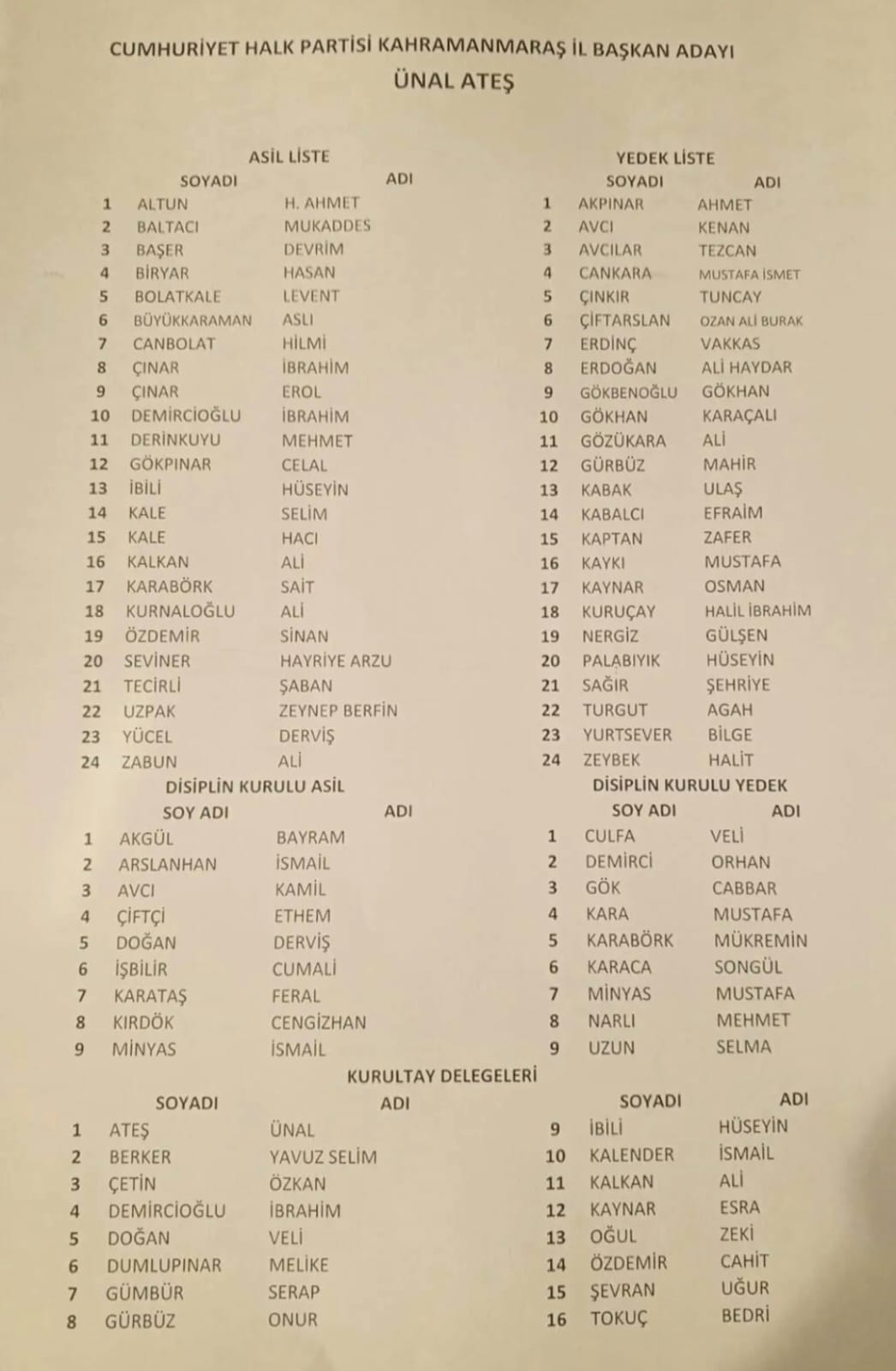Kongrenin sonunda gerçekleştirilen seçimde mevcut başkan Ünal Ateş, rakibi Av. Selim Sümen karşısında 250 oy alarak yeniden CHP Kahramanmaraş İl Başkanı seçildi. Sümen ise 148 oyda kaldı.