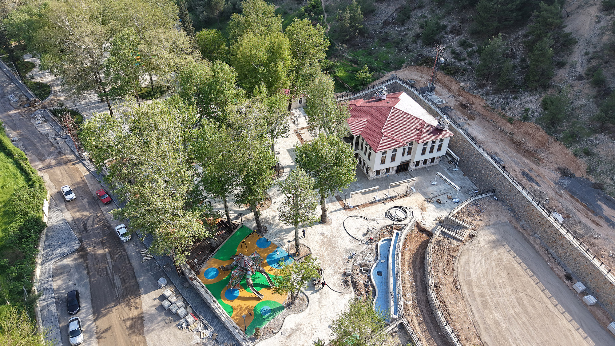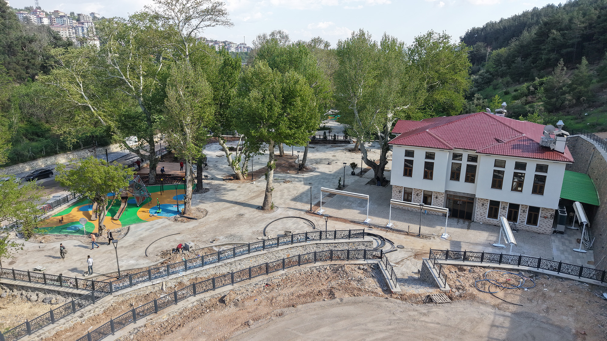 Büyükşehir Belediyesinin Dulkadiroğlu Pınarbaşı mevkiine kazandırdığı Çınaraltı Sosyal Tesisleri’nde son hazırlıklar yapılıyor. Tesisin inşası tamamlanırken, çevre düzenlemeleri ve peyzaj uygulamaları da yoğun bir tempoyla devam ediyor.