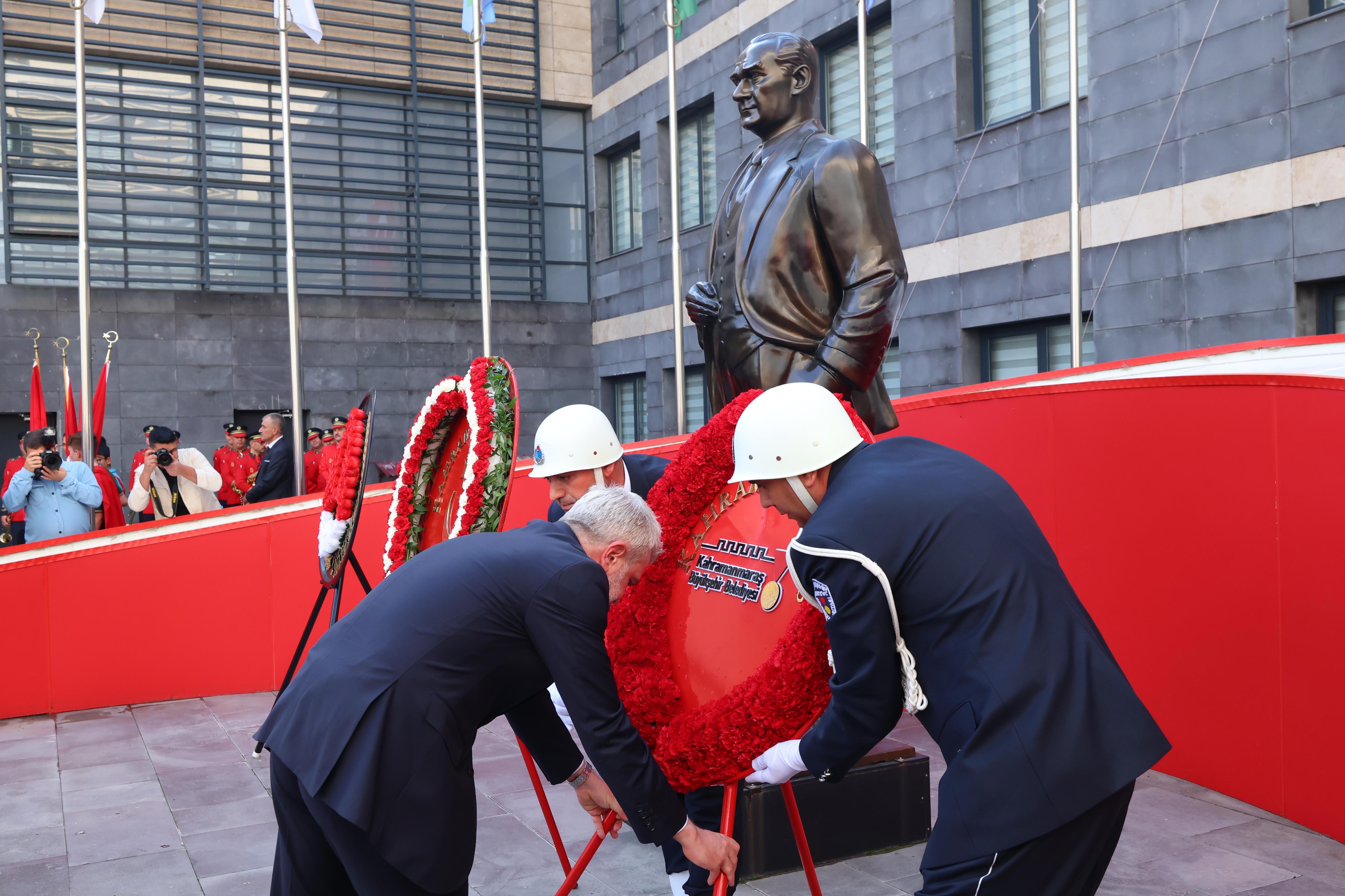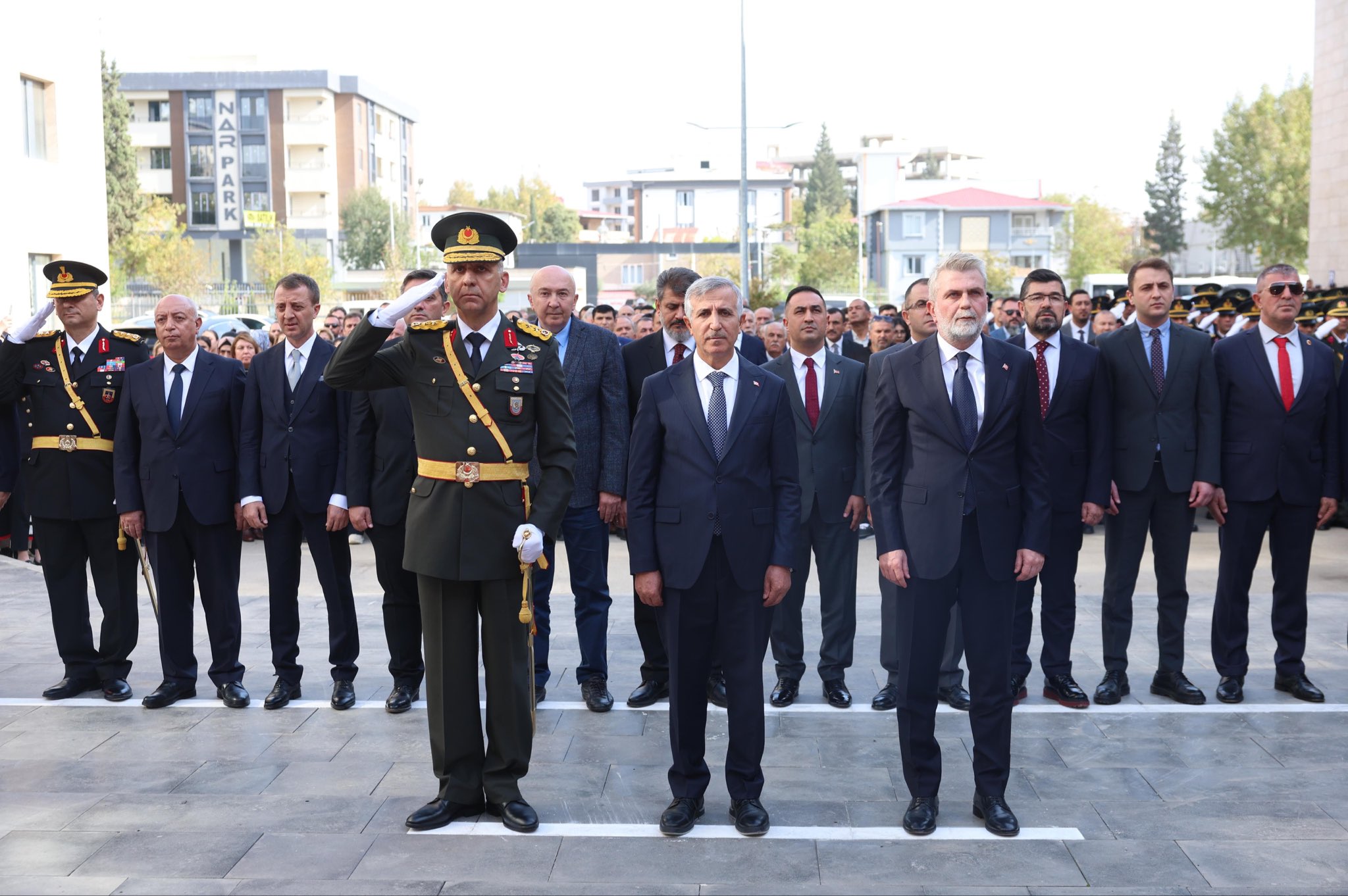 Cumhuriyet’in ilanının 102. yıl dönümü dolayısıyla düzenlenen kutlama etkinlikleri Atatürk Anıtı’na çelenk sunma töreniyle başladı. İl Emniyet Müdürlüğü bahçesinde gerçekleştirilen törende; şehir protokolü, kamu kurum ve kuruluş, siyasi parti ve sivil toplum kuruluşu temsilcileri yer aldı.
