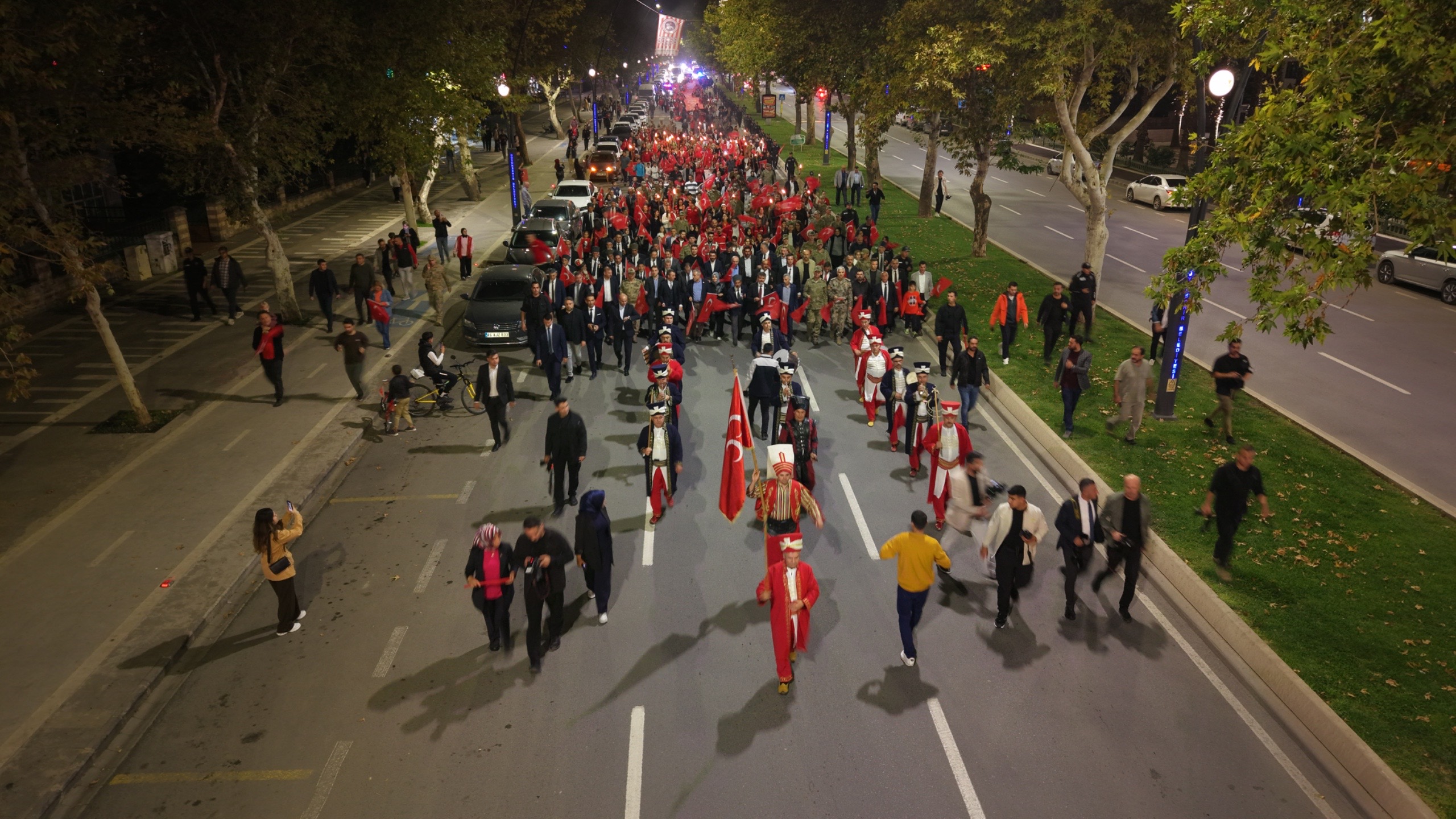 Cumhuriyet’in 102. yıl dönümü kutlamaları, gerçekleştirilen Cumhuriyet Yürüyüşü ile devam etti. Şehir protokolü ve binlerce vatandaş, Türk Bayrakları, meşale ve marşlarla Onikişubat Parkı’ndan NFK Kültür Merkezi’ne kadar yürüdü.