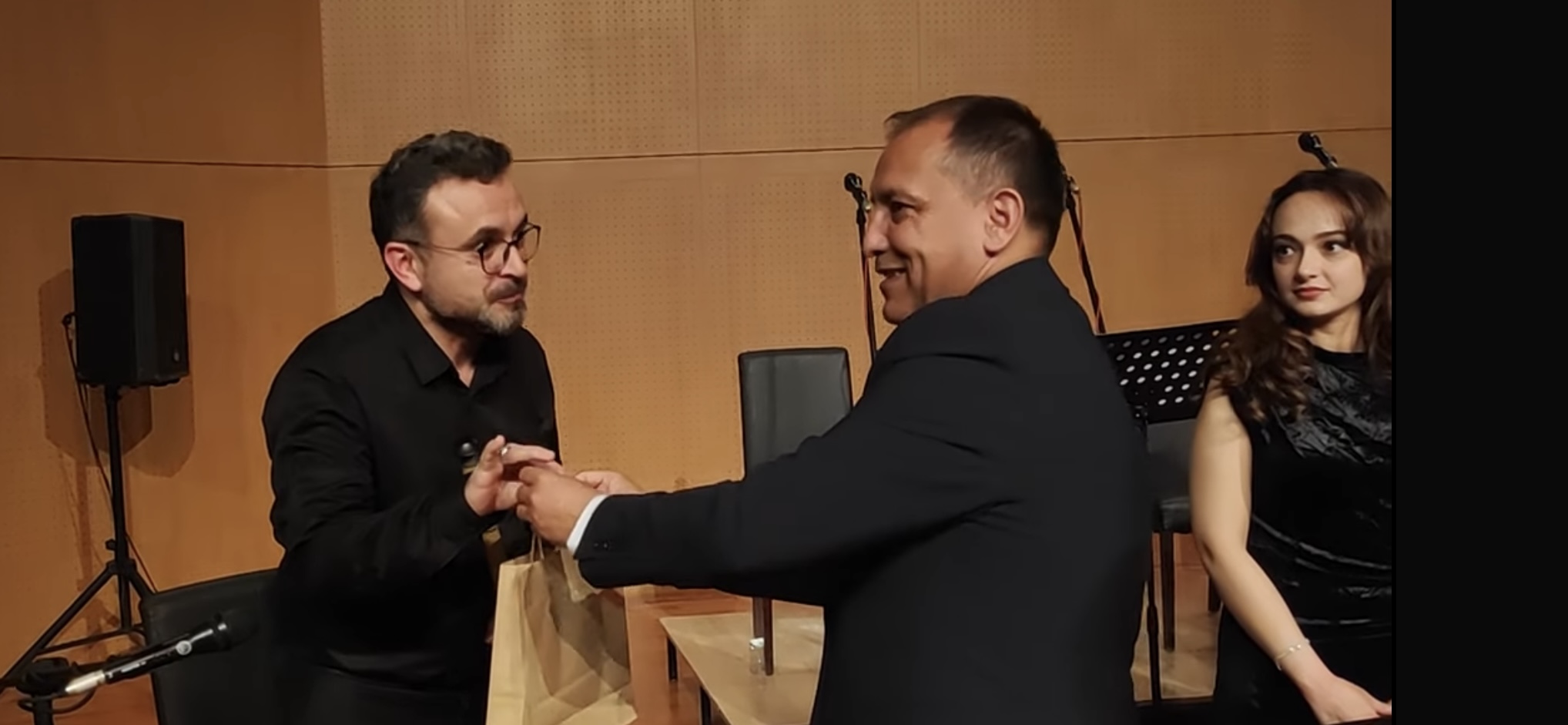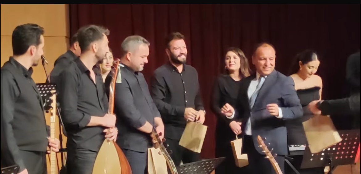 Konserin ardından sahnede anlamlı bir hediyeleşme töreni gerçekleştirildi.