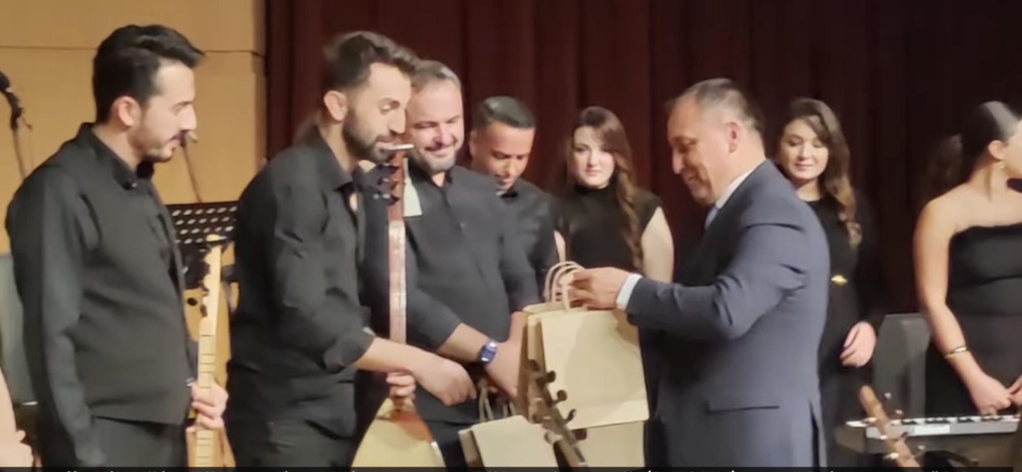 Orkestra üyelerine de tek tek teşekkür edilerek hediye takdim edildi.