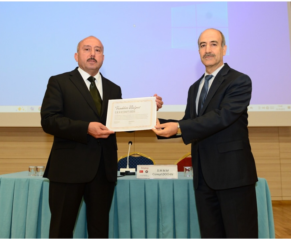 Etkinliğin sonunda, KSÜ İktisadi ve İdari Bilimler Fakültesi Kamu Yönetimi Bölüm Başkanı Prof. Dr. İbrahim Ethem Taş, katkılarından dolayı Cüneyt Doğan’a teşekkür belgesi takdim etti.