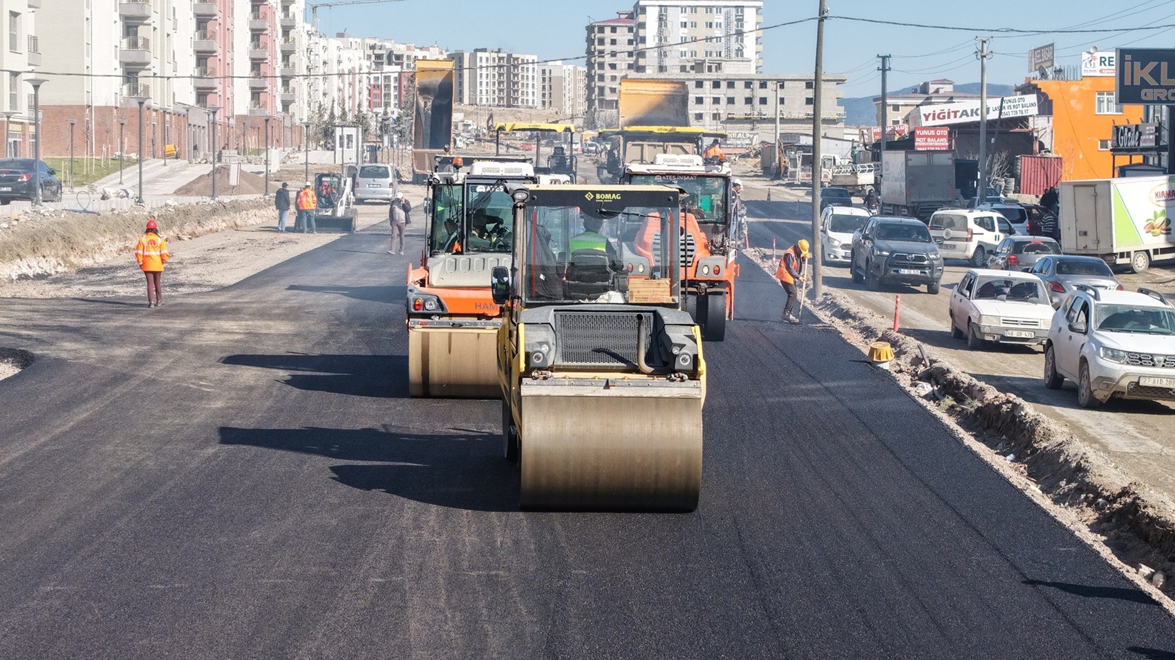 Bu kapsamda, altyapı çalışmalarının tamamlandığı Dulkadiroğlu Vezir Hoca Bulvarında sıcak asfalt serimine başlandı. Ekiplerinin titizlikle sürdürdüğü çalışmalar çerçevesinde ilk olarak zemin hazırlıkları tamamlandı. Ardından gerçekleştirilen sıcak asfalt serimi ile birlikte yolun sürüş konforunun artırılması, araç trafiğinin daha düzenli ve güvenli şekilde ilerlemesi hedefleniyor.