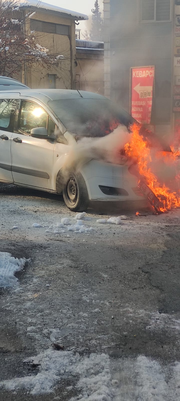 DULKADİROĞLU YENİ SANAYİ SİTESİ’NDE ARAÇ YANGINI: ESNAF TEPKİLİ