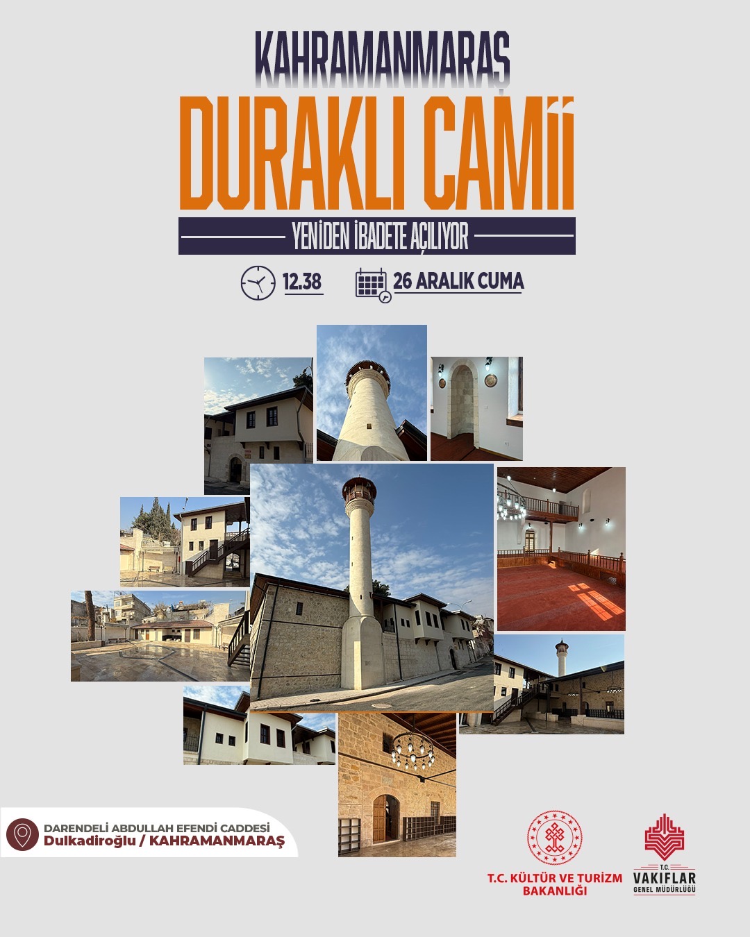 Vakıflar Genel müdürlüğü koordinesinde yürütülen restorasyon çalışmaları kapsamında, caminin tarihi dokusu ve mimari özellikleri korunarak güçlendirme ve onarım işlemleri tamamlandı. Bölge için hem tarihi hem de manevi açıdan önemli bir yere sahip olan Duraklı Camii, yeniden cemaatle buluşmaya hazırlanıyor.