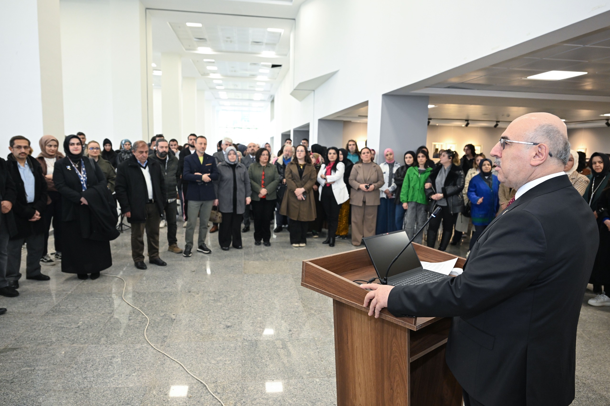 Kahramanmaraş Sütçü İmam Üniversitesi Rektörü Prof. Dr. Mahmut Ak ise konuşmasında üniversitenin farklı bölümlerinde görev yapan öğretim üyelerinin nitelikli çalışmalar ortaya koyduğunu belirterek emeği geçen akademisyenlere teşekkür etti. Edebiyat ile görsel sanatların bir araya gelmesinin kültür hayatına katkı sunduğunu ifade eden Ak, farklı disiplinlerin aynı sergide buluşmasının gelecek adına umut verici olduğunu dile getirdi. Minyatür sanatına da değinen Ak, Türk minyatür geleneğinin hayatın içinden sahneleri ve manevî dünyayı yansıttığını, bu yönüyle temsilî anlayıştan ayrıldığını söyledi. Bilinen olayların nakış yoluyla somutlaştırılmasının kıymetli bir çaba olduğunu belirten Ak, yeni çalışmaların sanat hayatına güç katacağını ifade etti.