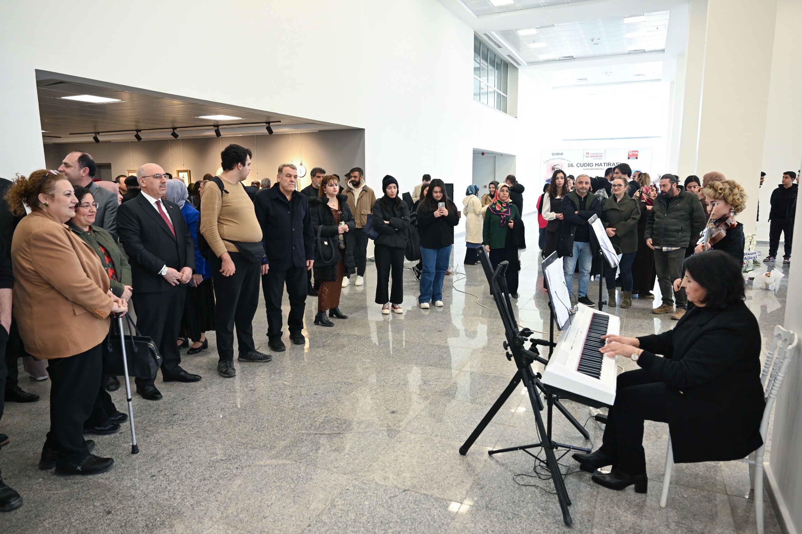 Açılış konuşmalarının ardından kurdele kesimi gerçekleştirildi. Sergi, piyanoda Kahramanmaraş Sütçü İmam Üniversitesi Güzel Sanatlar Fakültesi Dr. Öğr. Üyesi Arzu Mustafeyava ve kemanda Güzel Sanatlar Fakültesi öğrencisi Pakize Öz’ün dinletisiyle devam etti.