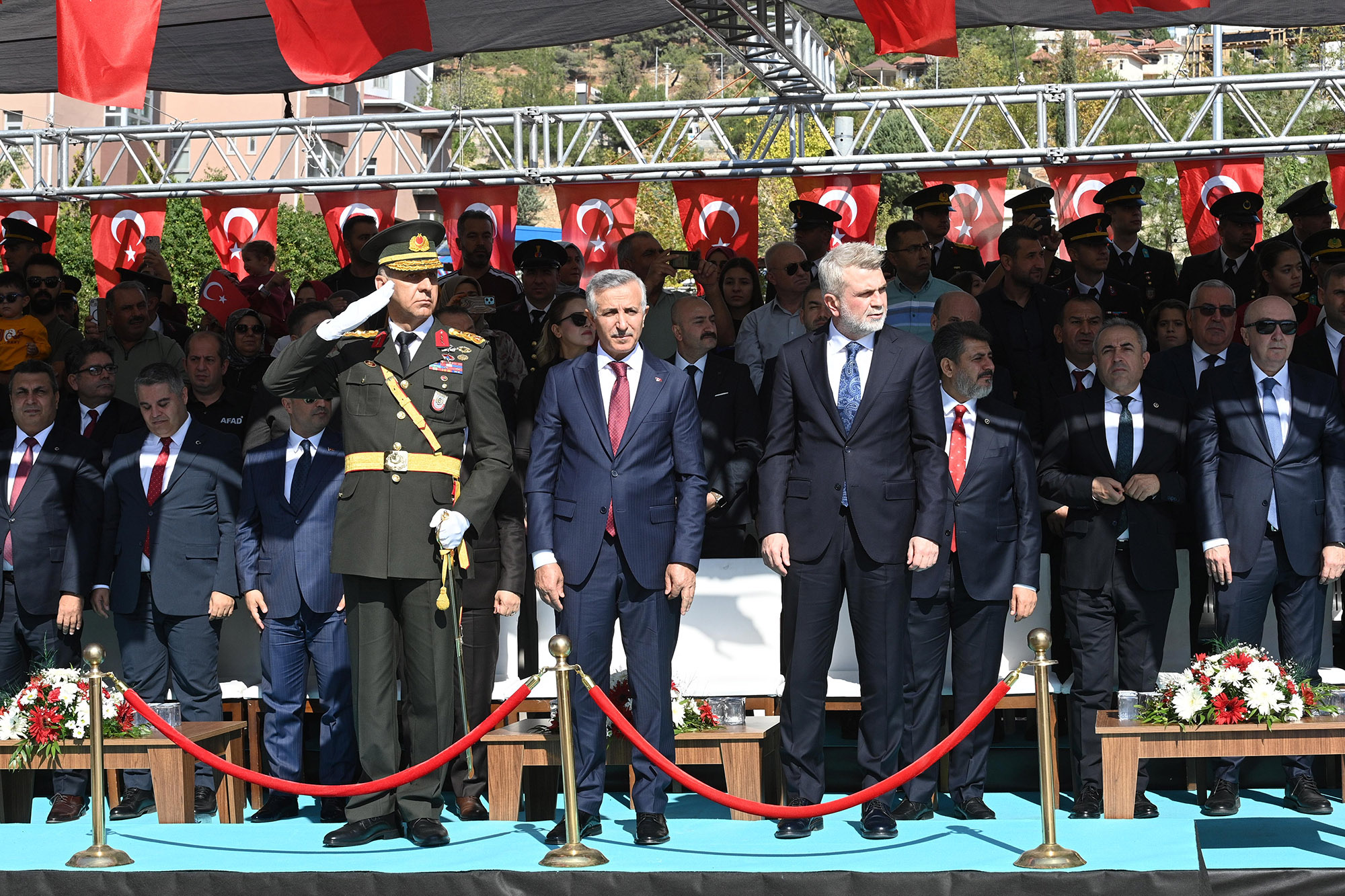 Cumhuriyet Bayramı kutlama programı, Valilikte gerçekleştirilen protokol tebrikinin ardından Prof. Dr. Necmettin Erbakan Bulvarı’nda düzenlenen çeşitli etkinliklerle devam etti. Şehir protokolü ve yüzlerce vatandaşın katılımıyla gerçekleştirilen kutlama programında; Vali Mükerrem Ünlüer, Tugay Komutanı Tuğgeneral Tolga Genç ve Büyükşehir Belediye Başkanı Fırat Görgel, araç üzerinde alandaki katılımcıları selamlayarak Cumhuriyet Bayramı’nı tebrik etti.