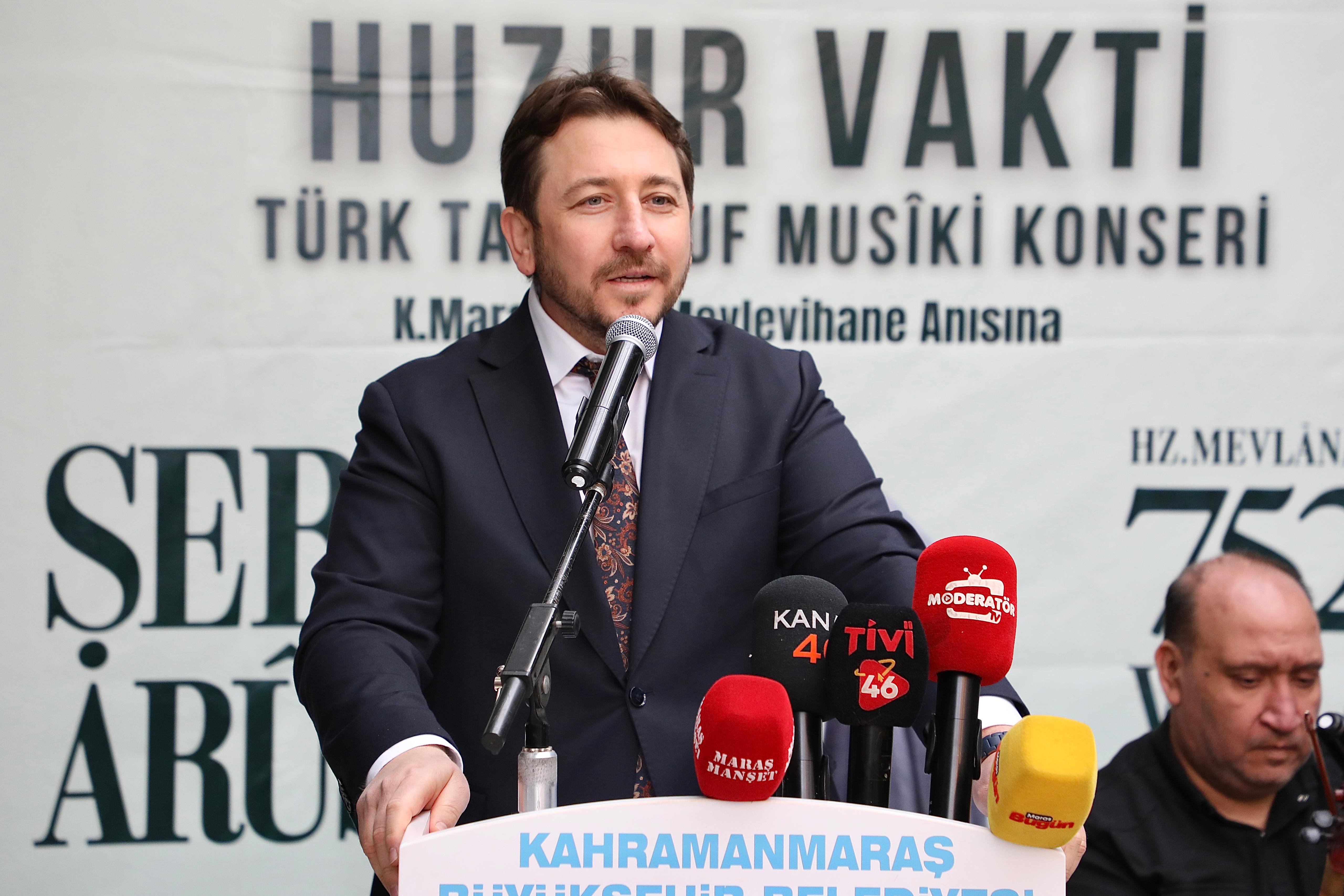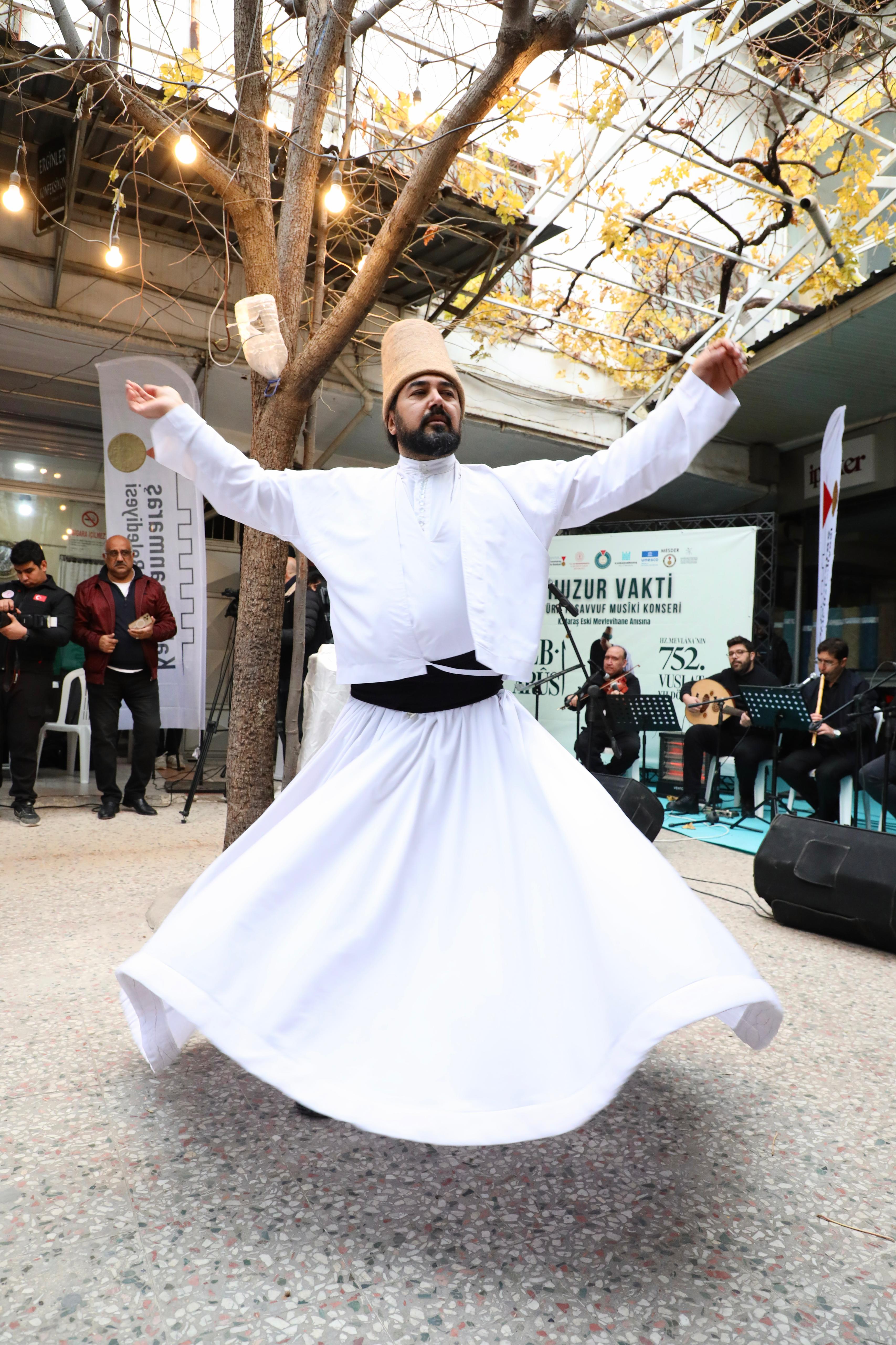Hz. Mevlânâ Celaleddin-i Rûmî’nin 752. vuslat yıl dönümü dolayısıyla Kahramanmaraş’ta düzenlenen “Huzur Vakti – Türk Tasavvuf Musikisi Konseri ve Sema Töreni”, gönüllere dokunan anlara sahne oldu. Kahramanmaraş İl Kültür ve Turizm Müdürlüğü ev sahipliğinde, Kahramanmaraş Eski Mevlevîhanesi anısına Kapalı Çarşı içerisindeki Saatçiler Pasajı’nda gerçekleştirilen program, yoğun katılım ve derin bir manevi atmosfer eşliğinde icra edildi.