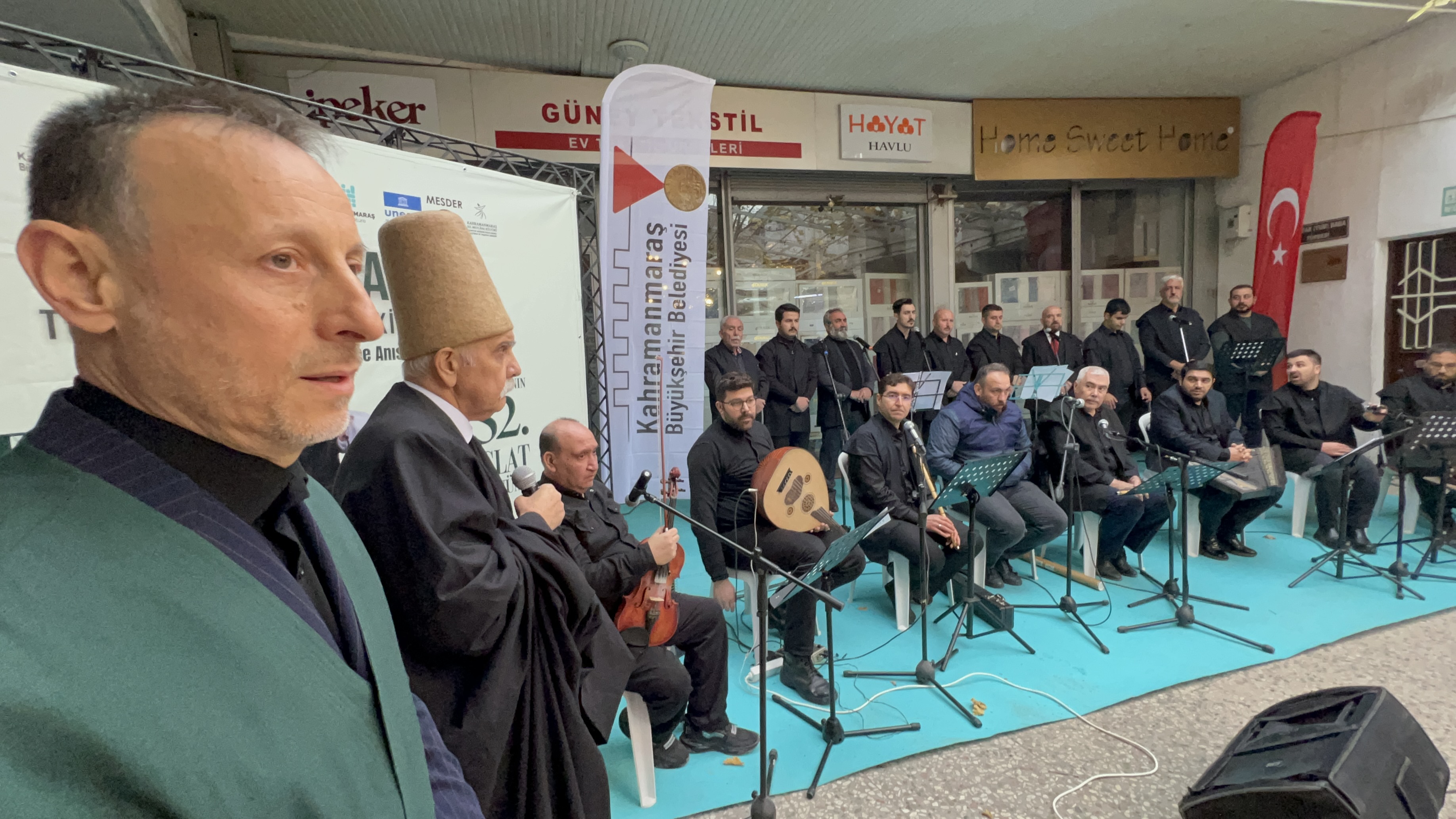 Türk Tasavvuf Musikisi’nin seçkin eserleri, ilahiler, salât-ı selamlar ve tekbirlerle devam eden programda, uzun bir aradan sonra Maraş Mevlevî geleneği yeniden canlandı. Sema gösterisiyle birlikte geçmişle bugün arasında güçlü bir bağ kuruldu; yüzyıllardır bu topraklarda var olan irfan geleneği adeta yeniden nefes aldı.