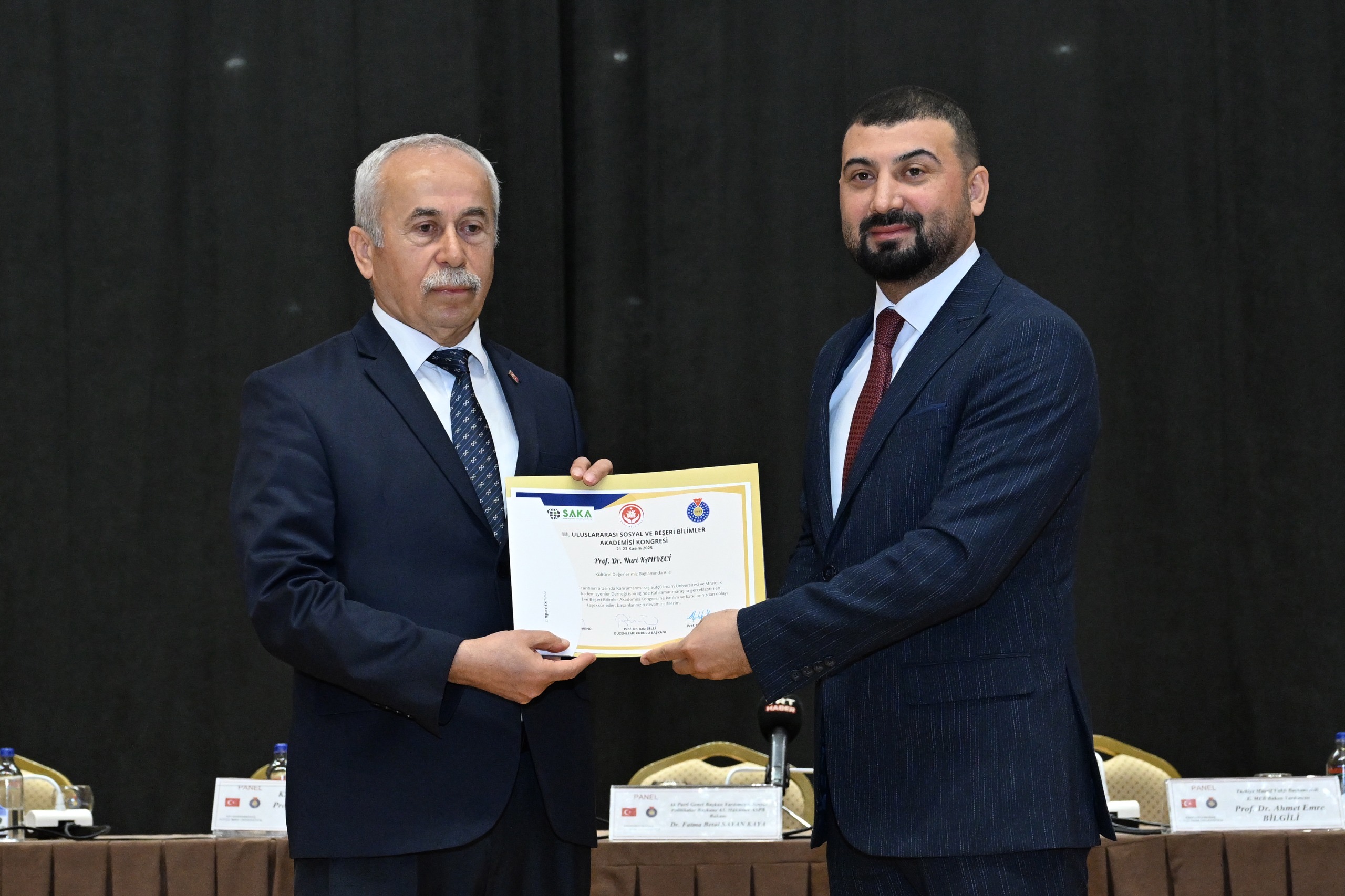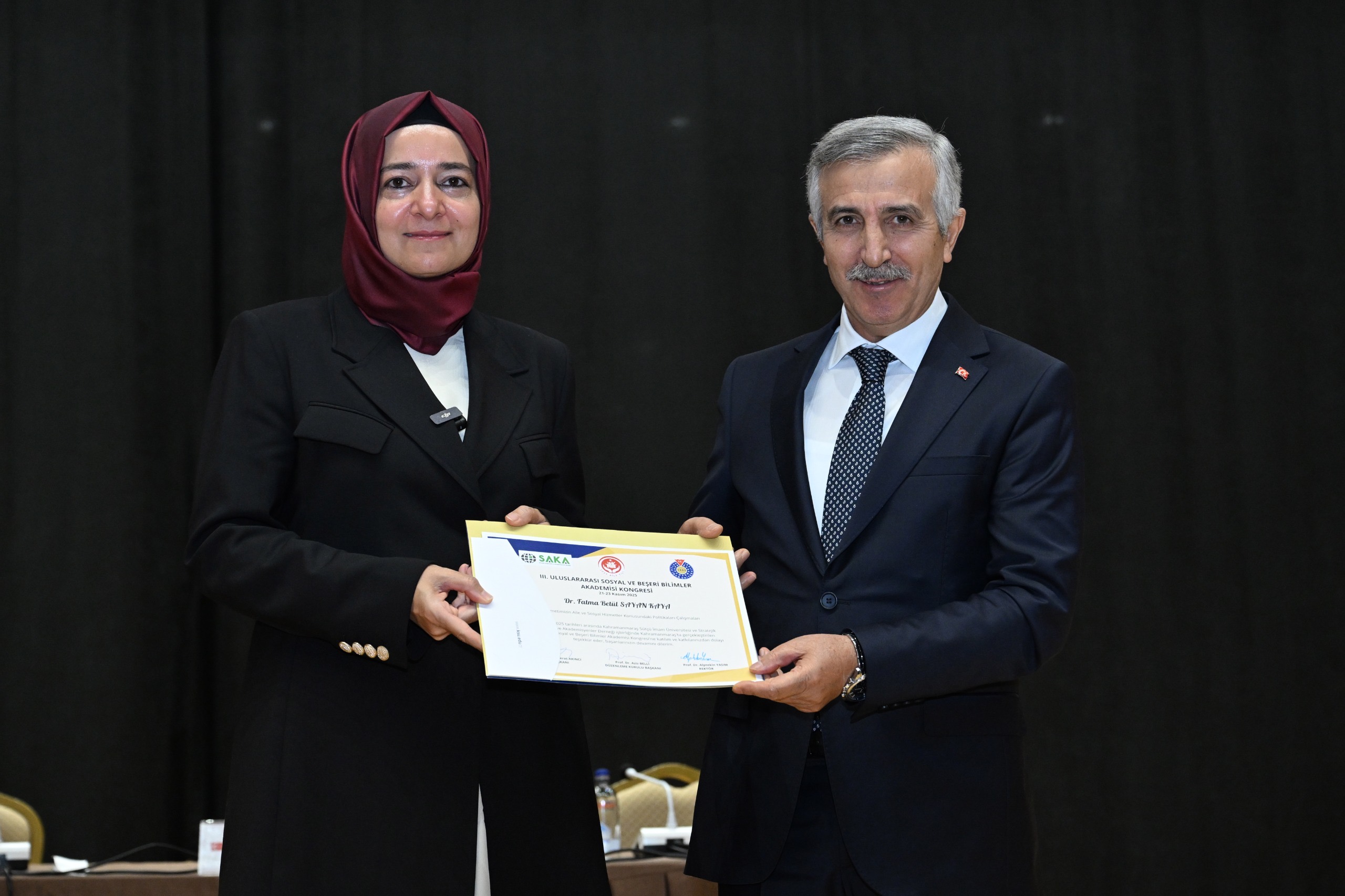 Rektör Vekili Prof. Dr. Orhan Doğan, konuşmasında III. Uluslararası Sosyal ve Beşeri Bilimler Akademisi Kongresine ev sahipliği yapmaktan duyduğu memnuniyeti dile getirerek tüm katılımcılara “hoş geldiniz” dedi. 2025 yılının Aile Yılı olarak ilan edilmesinin sosyal ve beşeri bilimler alanındaki çalışmalara ayrı bir önem kazandırdığını vurgulayan Doğan, kongreye farklı coğrafyalardan katılan misafirlerin programı uluslararası ölçekte güçlü bir bilim platformuna dönüştürdüğünü ifade etti. Kongrenin yeni iş birliklerine imkân sağlayacağına ve sosyal bilimler alanına anlamlı katkılar sunacağına inandığını belirten Doğan, destek veren tüm kurum ve kuruluşlara teşekkür etti. Prof. Dr. Doğan, kongrenin faydalı tartışmalarla güçlü çıktılar üreten verimli bir program olmasını dileyerek sözlerini tamamladı.