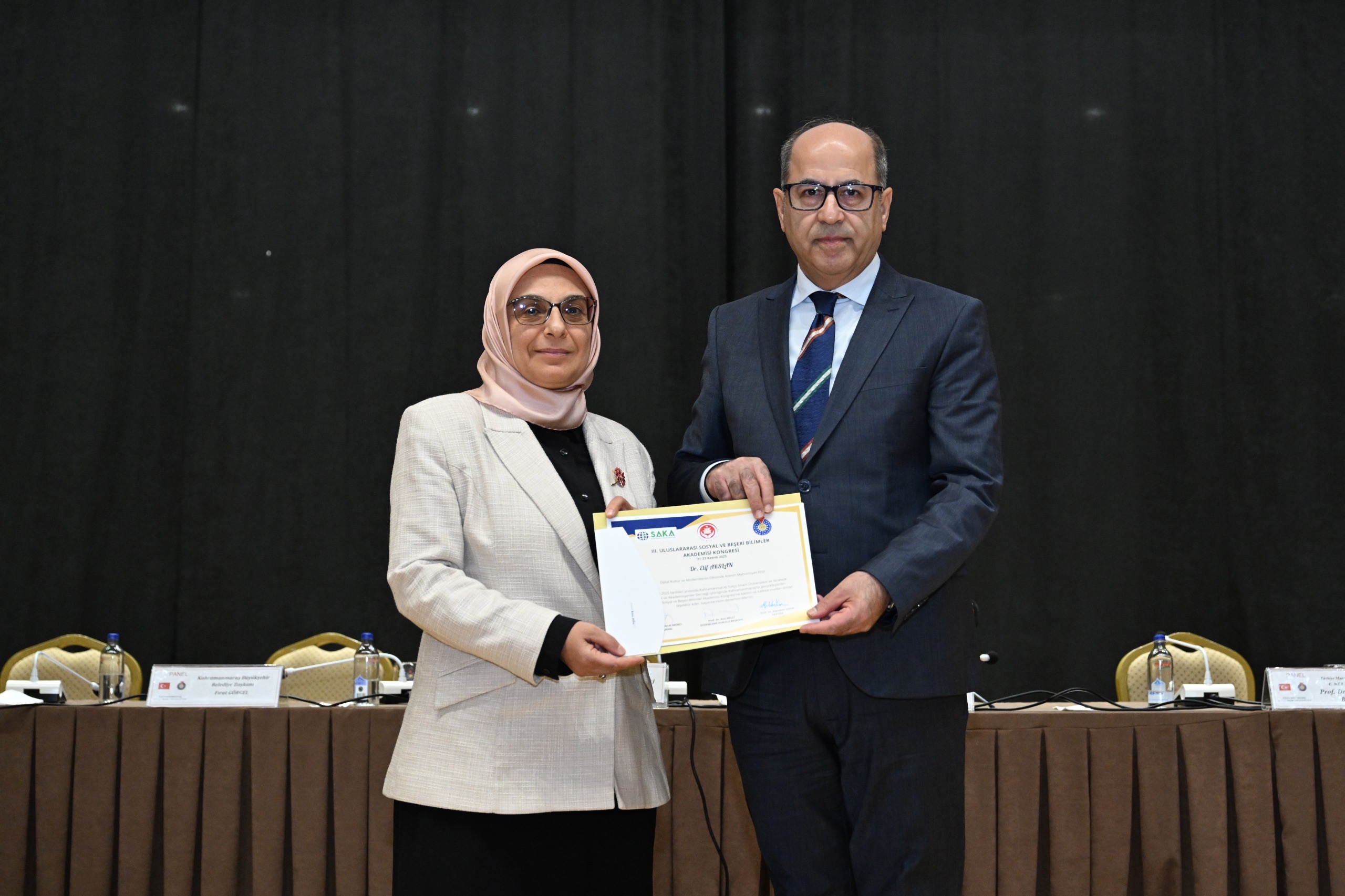 Programın sonunda moderatör ve panelistlere belge takdim edildi. Kahramanmaraş Valisi Mükerrem Ünlüer, Dr. Fatma Betül Sayan Kaya’ya; Milletvekili Tuba Köksal, Büyükşehir Belediye Başkanı Fırat Görgel’e; Prof. Dr. İsmail Bakan ve Prof. Dr. Ahmet Emre Bilgili’ye; Prof. Dr. Orhan Doğan ve Dr. Elif Arslan’a; Doç. Dr. Berat Akıncı ise Prof. Dr. Nuri Kahveci’ye belgelerini verdi. Toplu fotoğraf çekimi ile program tamamlandı. Kongre, yüz yüze ve çevrimiçi oturumlarla yarın da devam edecek.