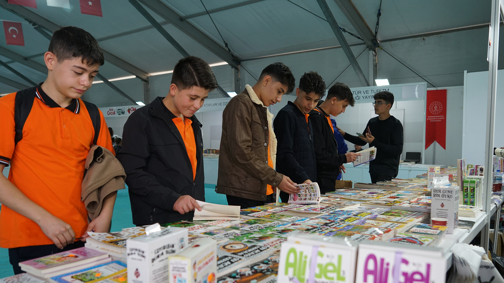 Kahramanmaraş Büyükşehir Belediyesinin ev sahipliğinde gerçekleşen 10. Uluslararası Kitap Fuarı, yalnızca kitapların değil, fikirlerin ve hatıraların da buluşma noktası olmaya devam ediyor. Her gün on binlerce kitapseveri ağırlayan fuar, bu yıl da öğrencilerin ziyaretleri ile renkli görüntülere sahne olmaya devam ediyor. Kitaba ulaşma noktasında her öğrenciye fırsat eşitliği sunmak için Ilıca Yeniyapan Ortaokulu öğrencilerini fuarla buluşturan Büyükşehir Belediyesi, kırsalda yaşayan öğrencilerin kitapların büyülü dünyasını keşfetmesine imkân tanıdı.