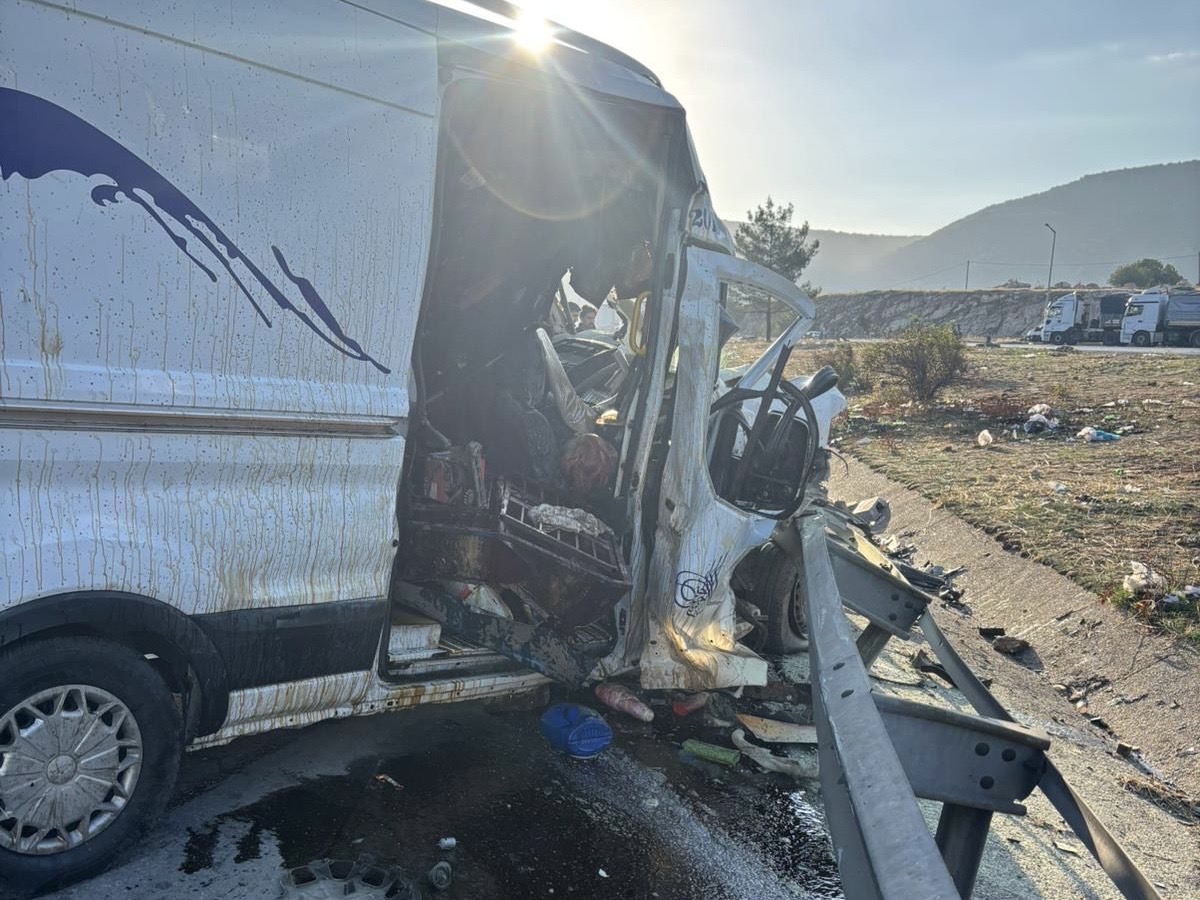 Edinilen bilgilere göre, seyir halindeki ticari araç, henüz belirlenemeyen bir nedenle önünde ilerleyen TIR’a çarptı. Çarpmanın etkisiyle ticari araç bariyerlere saplanarak durabildi. Araç, çarpmanın şiddetiyle ön kısmı tanınmaz hale geldi.