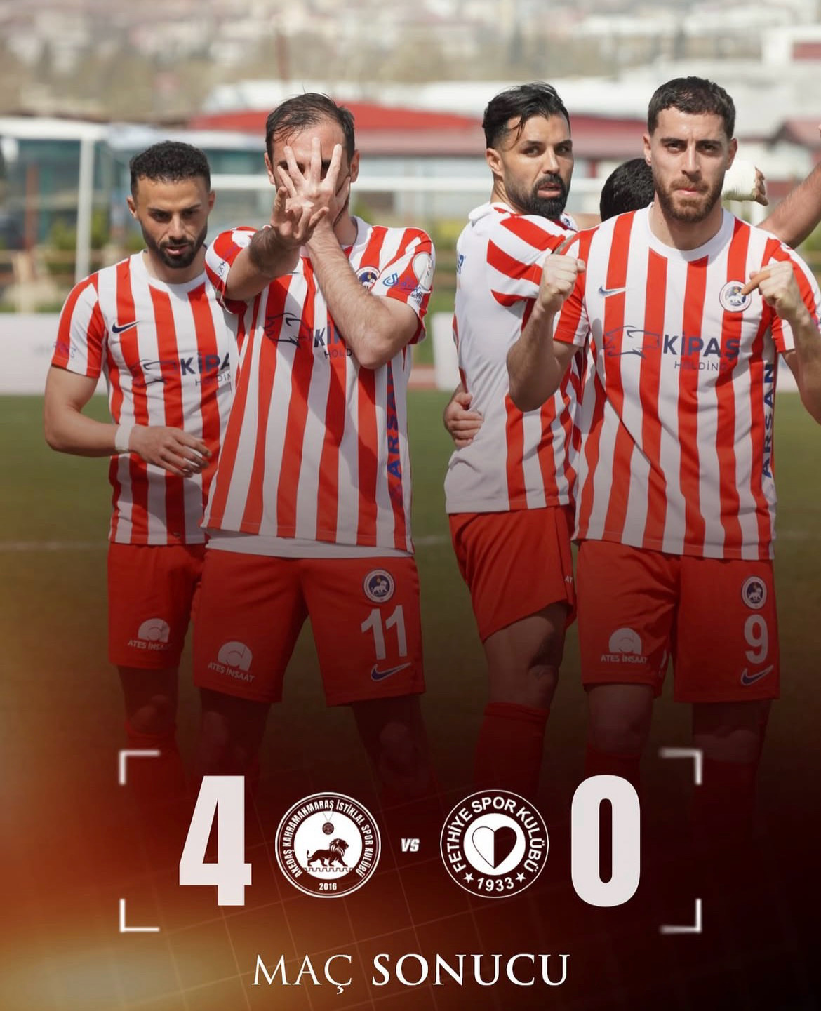 Kahramanmaraş İstiklalspor, TFF 2. Lig Kırmızı Grup’ta oynadığı Fethiyespor karşılaşmasında sahadan 4-0’lık net bir galibiyetle ayrılarak kötü gidişata son verdi. Bu sonuçla temsilcimiz, play-off hattındaki yerini korumayı başardı.