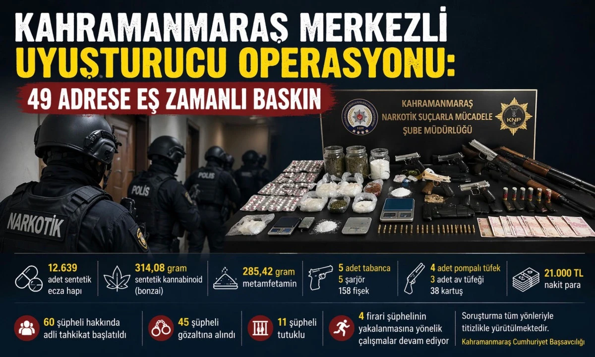 Kahramanmaraş merkezli uyuşturucu operasyonu: 49 adrese eş zamanlı baskın