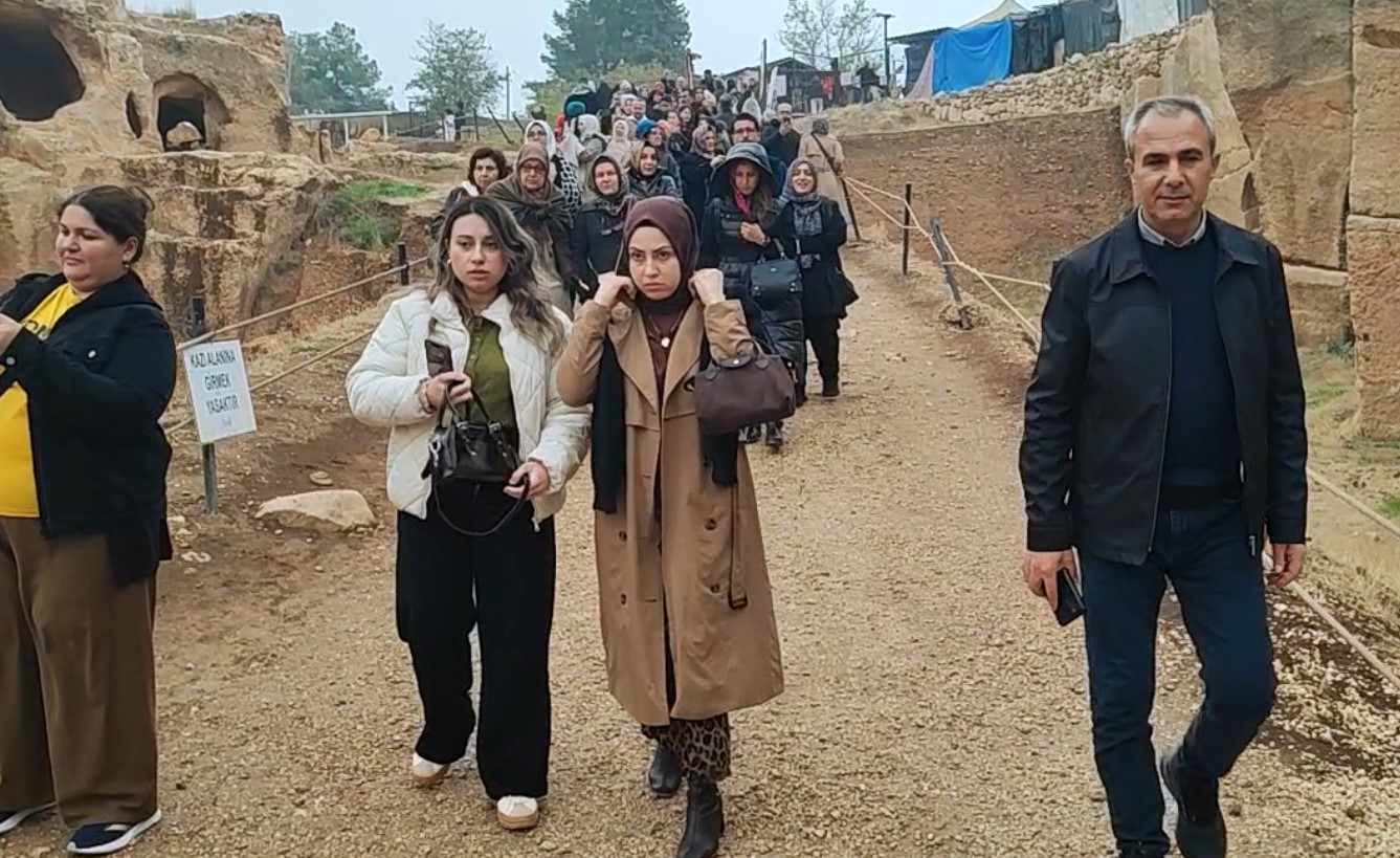 Gezinin ilk durağı olan Midyat’ta öğretmenler, sabah kahvaltısının ardından ilçenin sembolik taş konaklarını, çarşısını ve ünlü gümüş atölyelerini ziyaret etti. Bölgenin geleneksel yaşam biçimini ve zanaatkârlık kültürünü yansıtan bu mekânlar, katılımcıların büyük beğenisini topladı.