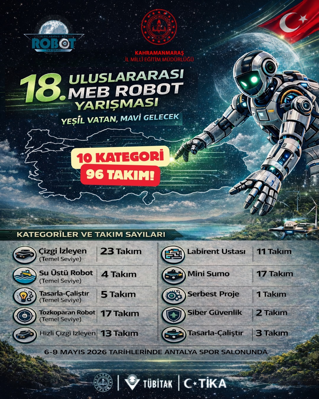 Kahramanmaraş, yarışmaya 10 farklı kategoride toplam 96 takım ile katılım sağlayarak dikkat çeken iller arasında yer aldı. Robotik, yazılım ve mühendislik alanlarında hazırlanan projelerle yarışacak öğrenciler, büyük finalde şehri en iyi şekilde temsil etmeye hazırlanıyor.