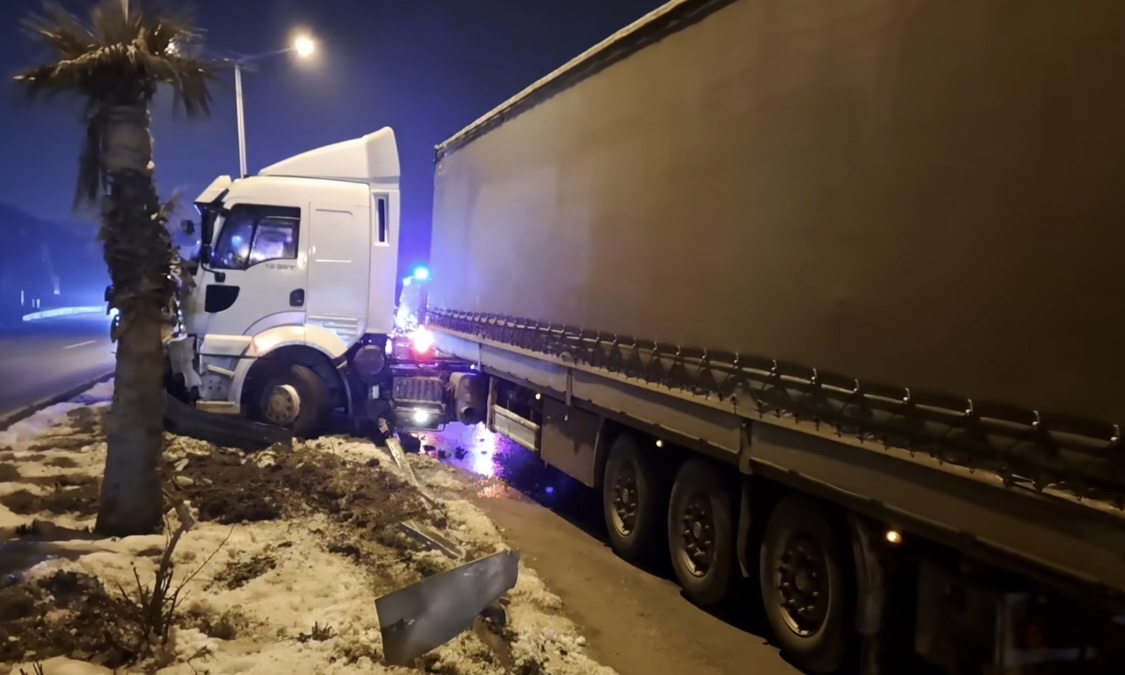 Kahramanmaraş–Kayseri karayolunda seyir halinde olan bir tır, sürücüsünün direksiyon hâkimiyetini kaybetmesi sonucu kontrolden çıkarak orta refüje çıktı. Savrulan araç, refüjde bulunan ağaca çarparak durabildi.