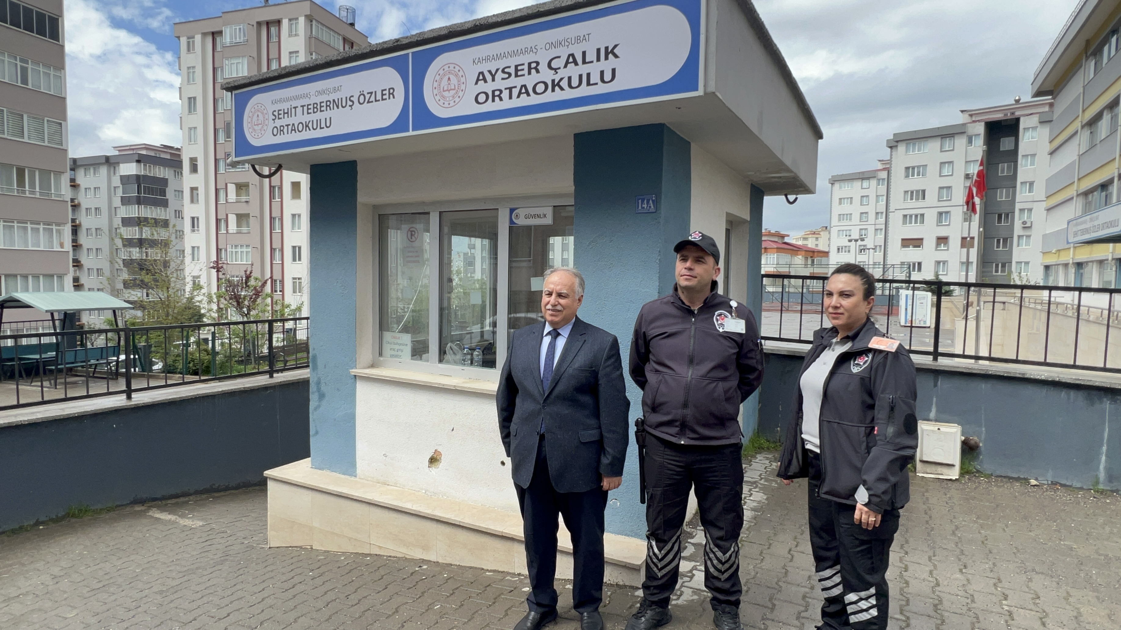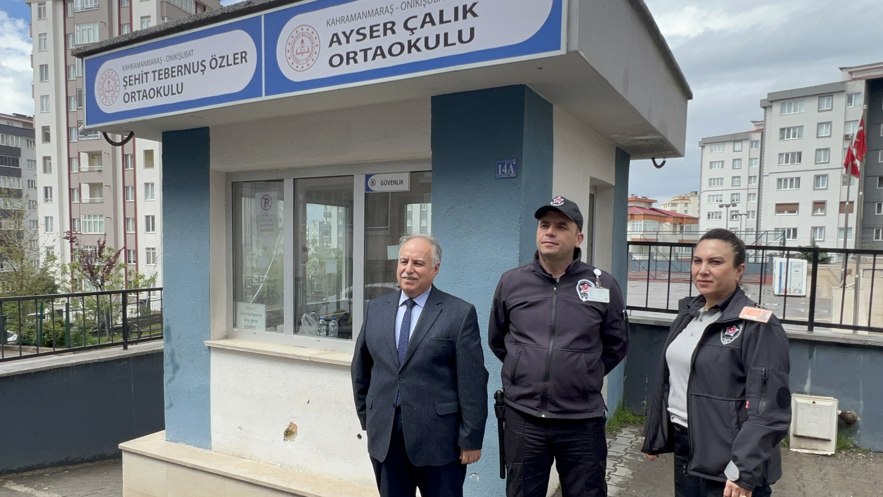 Program sonunda okul girişinde alınan güvenlik önlemleri dikkat çekti. Bir kadın ve bir erkek özel güvenlik görevlisinin görev yaptığı okulda, giriş-çıkışların kontrollü şekilde sağlandığı gözlemlendi. Okul Müdürü Mehmet Kıcalı’nın güvenlik görevlileriyle birlikte fotoğraf vermesi de alınan tedbirlerin ciddiyetini ortaya koydu.