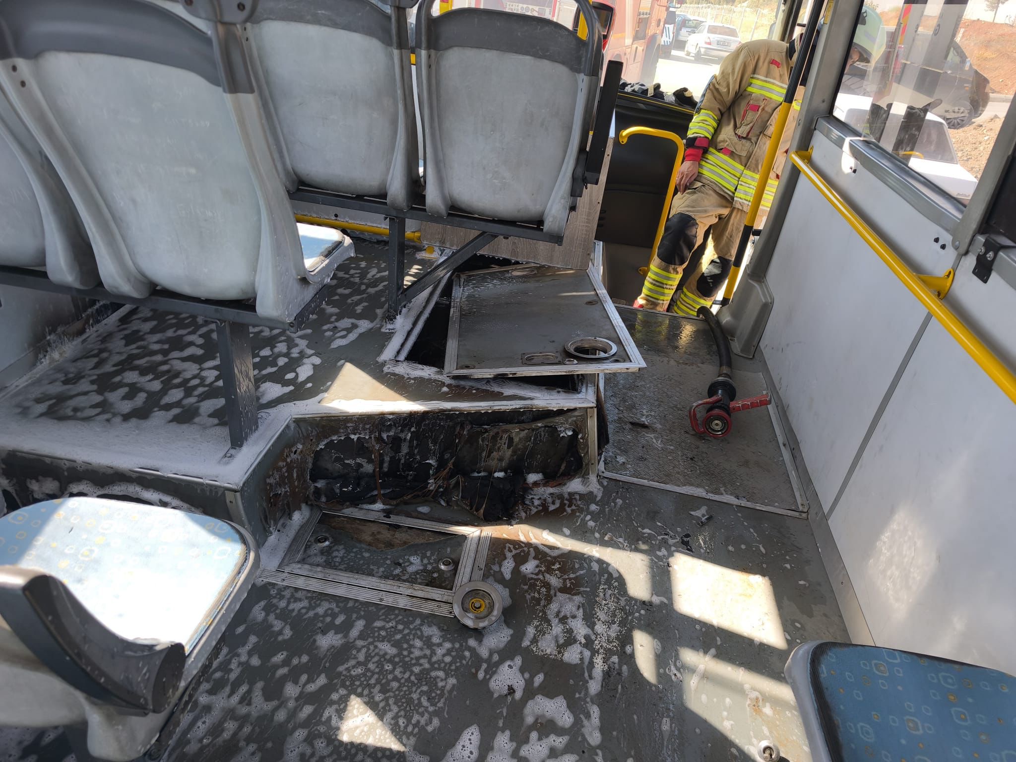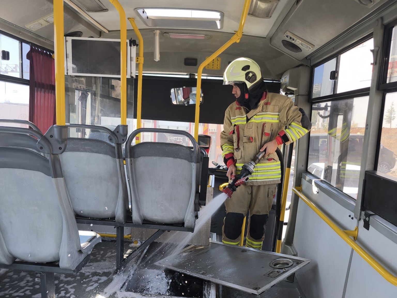 Kahramanmaraş’ın Dulkadiroğlu ilçesi Doğukent Mahallesi’nde Büyükşehir Belediyesi’ne ait özel halk otobüsünde yangın çıktı. Benzin deposundan çıktığı tahmin edilen alevler kısa sürede büyürken, şoförün hızlı müdahalesi olası bir faciayı önledi.