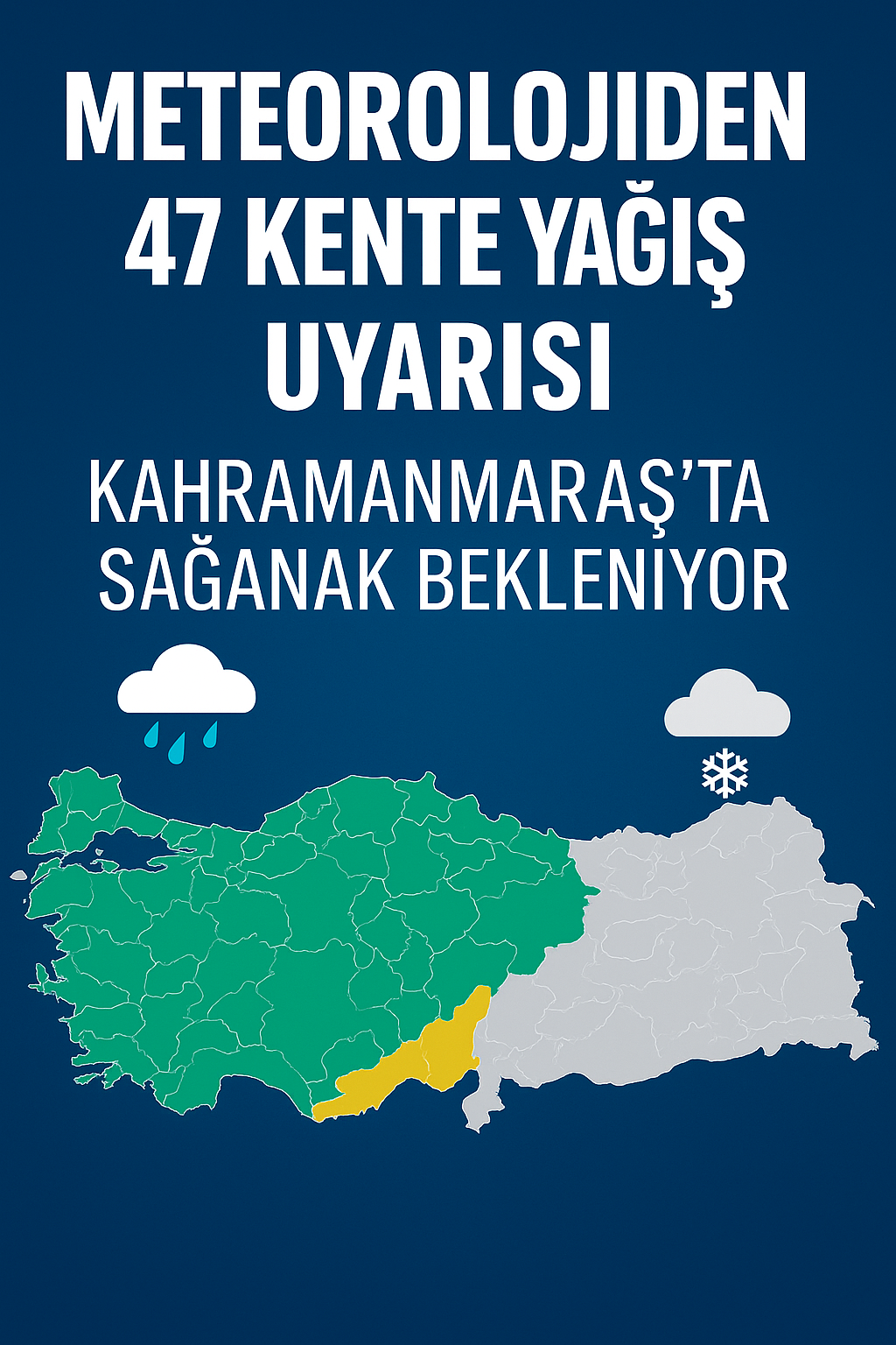 Meteoroloji Genel Müdürlüğü (MGM), yurt genelini kapsayan yeni hava durumu raporunu yayımladı. Rapora göre 47 ilde sağanak ve kar yağışı beklenirken, Kahramanmaraş da sağanak yağışın etkili olacağı iller arasında yer aldı. Yetkililer, özellikle yağışla birlikte oluşabilecek olumsuzluklara karşı vatandaşları tedbirli olmaya çağırdı.