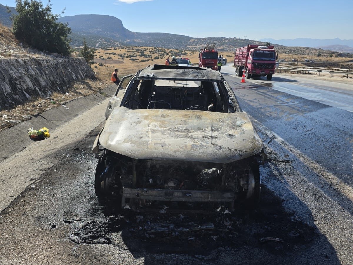 Kahramanmaraş’ın Pazarcık ilçesi Narlı–Çöçeli rampasında meydana gelen olayda seyir halindeki bir otomobil, henüz belirlenemeyen bir nedenle alev aldı. Kısa sürede büyüyen yangın, aracı adeta kül yığınına çevirdi.