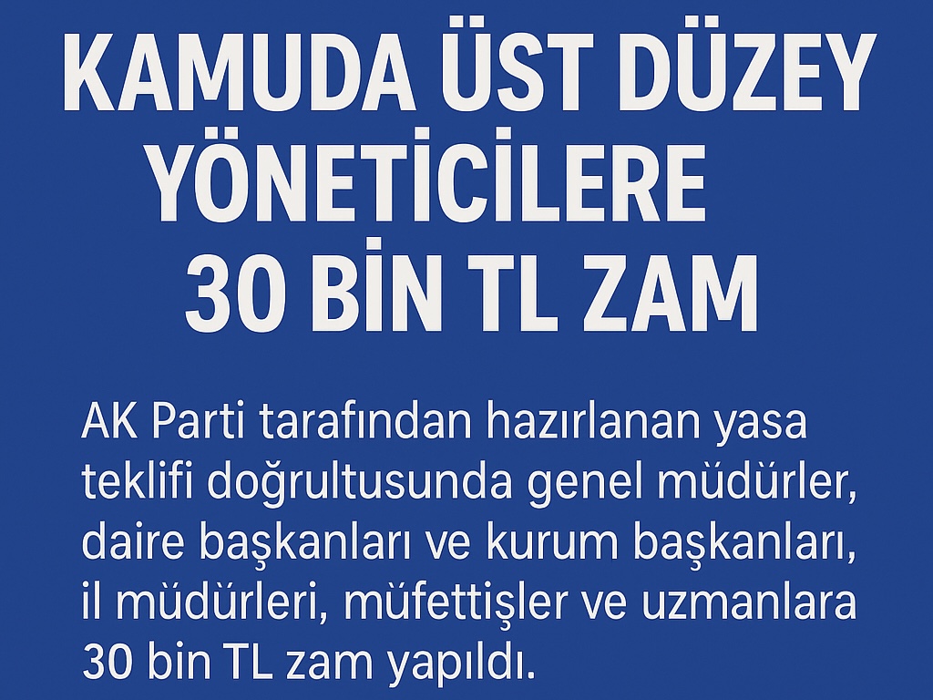 AK Parti tarafından Türkiye Büyük Millet Meclisi’ne sunulan ve kamudaki belirli üst düzey yöneticilere seyyanen zam öngören madde, TBMM Plan ve Bütçe Komisyonu’nda kabul edildi. Teklif yasalaşması hâlinde, bazı kamu personeline 30 bin TL’ye kadar seyyanen zam yapılacak.