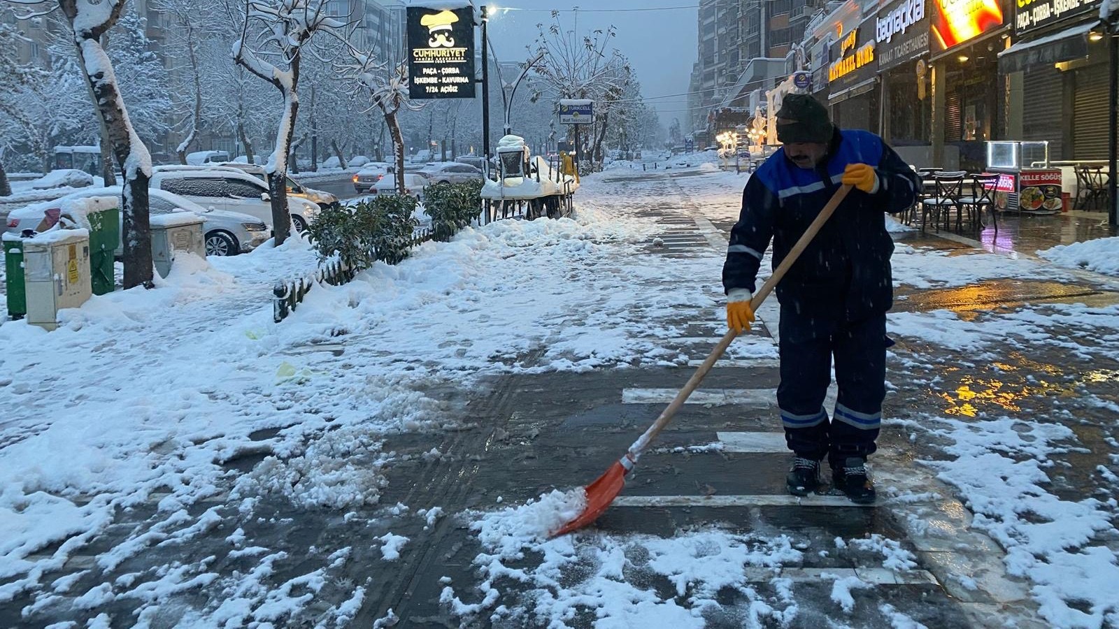 Büyükşehir Belediyesi ekipleri, ana arterler başta olmak üzere şehir içi ve kırsal mahalle yollarında kar küreme, tuzlama ve solisyon uygulamalarını yoğun bir şekilde gerçekleştirerek yolların ulaşıma açık kalmasını sağlıyor. Öte yandan yaya güvenliğini sağlamak amacıyla Çevre Koruma ve Sıfır Atık Dairesi Başkanlığı koordinesinde kapsamlı bir temizlik çalışması yürütülüyor. Toplam 200 personelin görev aldığı çalışmalarda; kaldırımlar, yaya geçitleri, hastane çevreleri, kamu kurumlarının önleri ve vatandaşlar tarafından yoğun olarak kullanılan yürüyüş yollarında biriken karlar titizlikle temizleniyor.