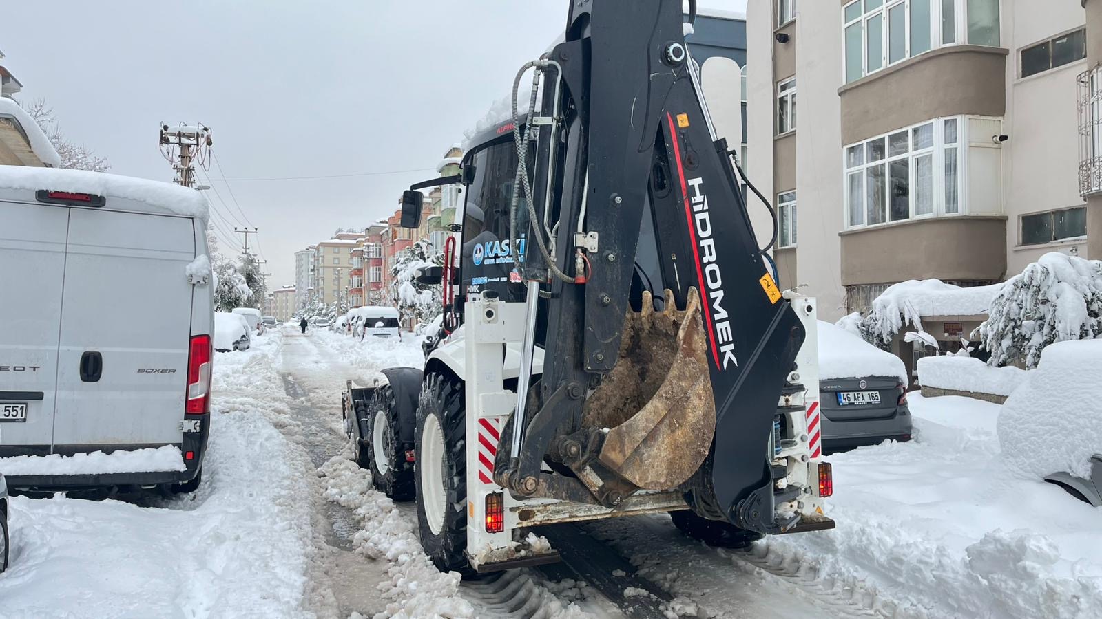 KASKİ Genel Müdürlüğü, şehir merkezinde yürütülen kar küreme, tuzlama ve solisyon uygulamalarına 28 iş makinesiyle destek vererek arterlerin ulaşıma açık tutulmasına katkı sağlıyor.