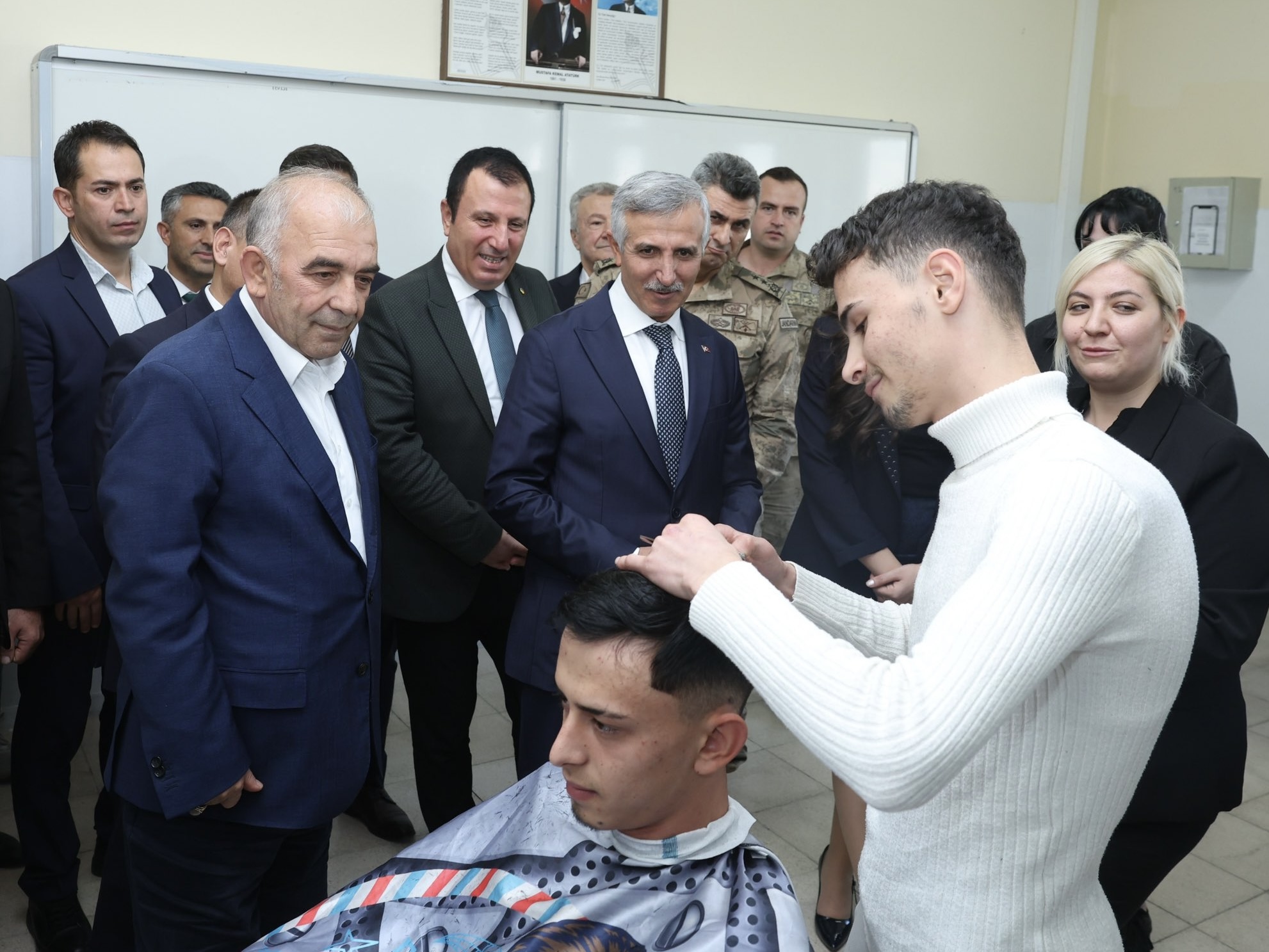 Ziyaret sırasında kuaförlük atölyesinde öğrencilerin uygulamalı eğitimlerini izleyen Vali Ünlüer ve beraberindeki heyet, gençlerin mesleki gelişimine yönelik yapılan çalışmalardan memnuniyet duyduklarını belirtti.