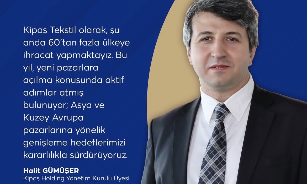 Kipaş Holding Yönetim Kurulu Üyesi Halit Gümüşer, ihracat vizyonuna ilişkin yaptığı değerlendirmede, global rekabet ortamında pazar dinamiklerine uyum sağlamanın ve yerel talepleri doğru analiz etmenin stratejik öncelikleri arasında yer aldığını belirtti.
