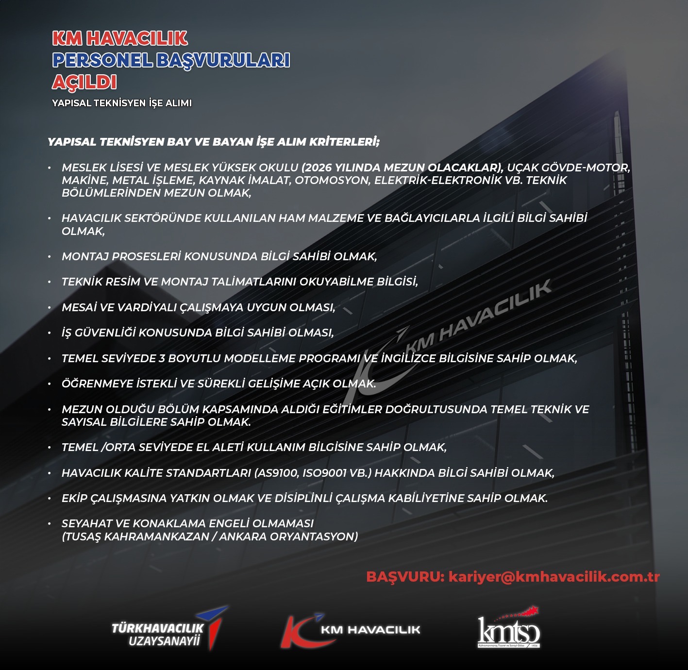 Başvuru adresi: kariyer@kmhavacilik.com.tr