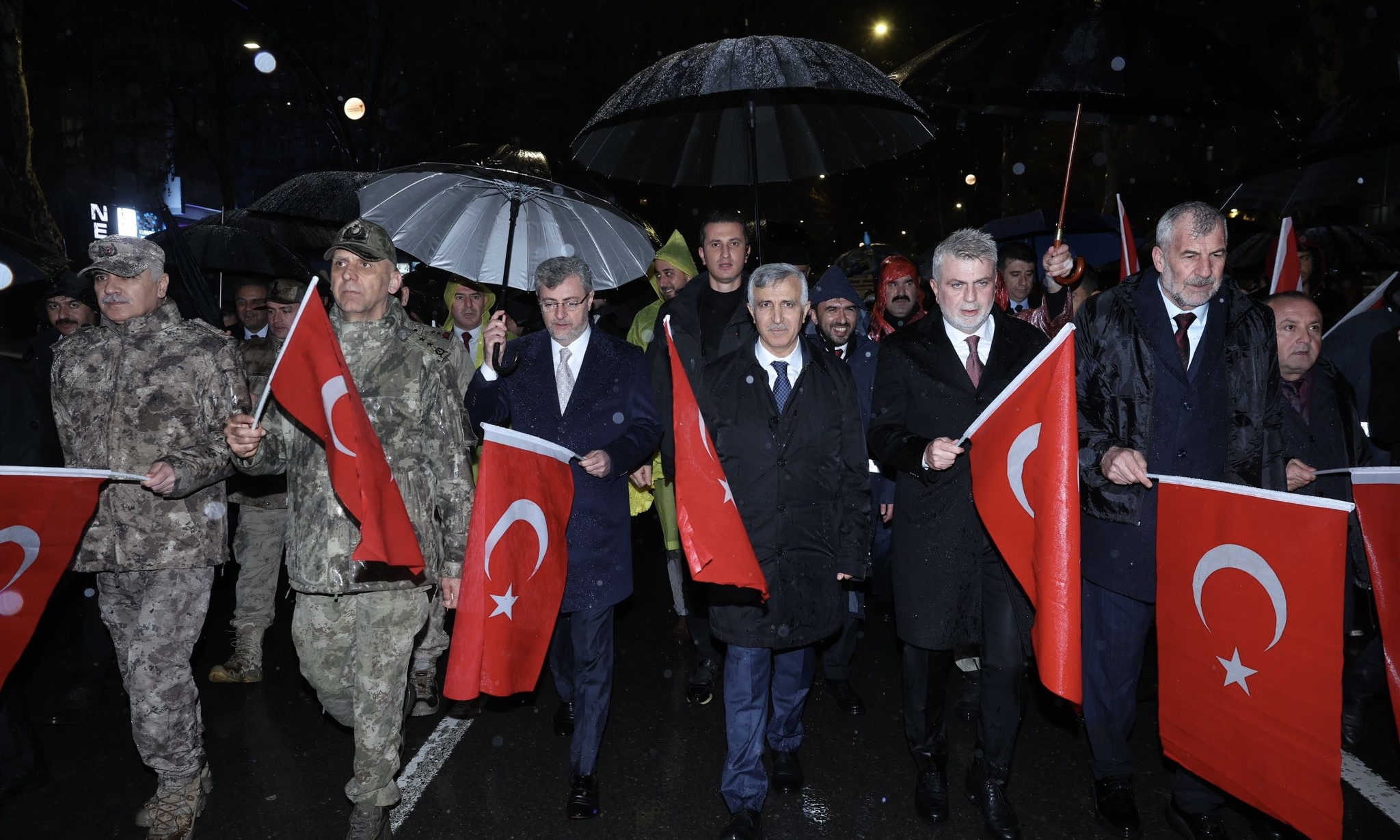 Marşlar eşliğinde ilerleyen korteje güzergâh boyunca balkonlardan ve yol kenarlarından alkışlarla destek verildi. 12 Şubat’un bağımsızlık ruhu, bir kez daha şehir merkezinde hissedildi.