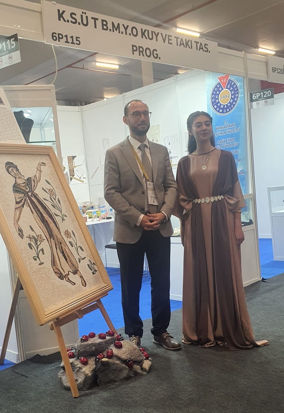 Takılar, simsırma işlemeli giysi ve çantalar ile mozaik işleme ürünlerinden oluşan koleksiyon, fuarda dikkatleri üzerine çekti. Uluslararası ziyaretçilerin yoğun ilgi gösterdiği eserler, hem KSÜ’nün akademik üretim gücünü hem de Kahramanmaraş’ın köklü kültürel mirasını tanıtma fırsatı sundu. Ters lale, uludaz böceği ve Germenicia mozaikleri gibi kentin simgeleri; küpe, broş, kolye, bilezik, çanta ve kemer tasarımlarında estetik bir dille yeniden yorumlanarak dünyaya taşındı.