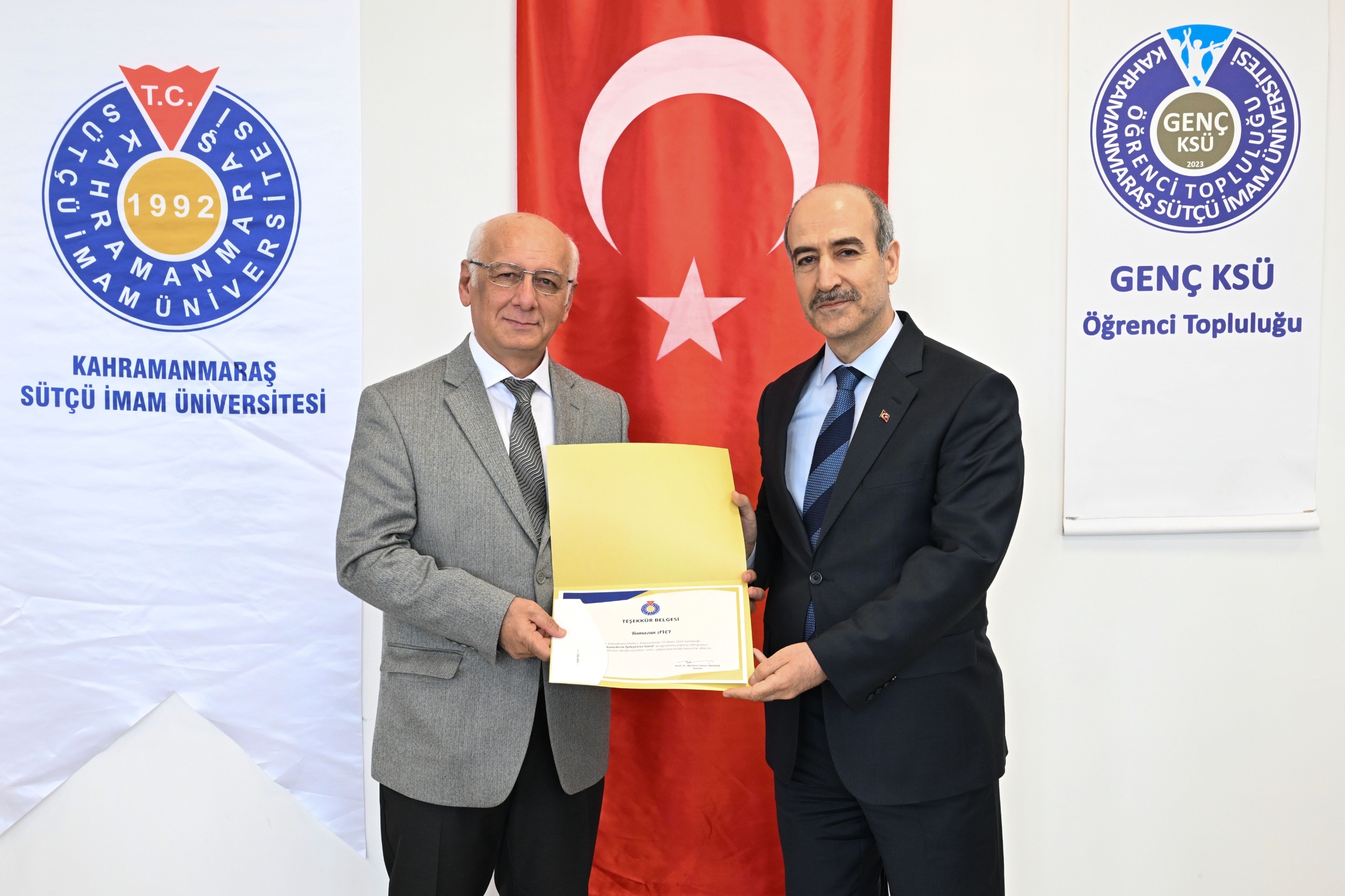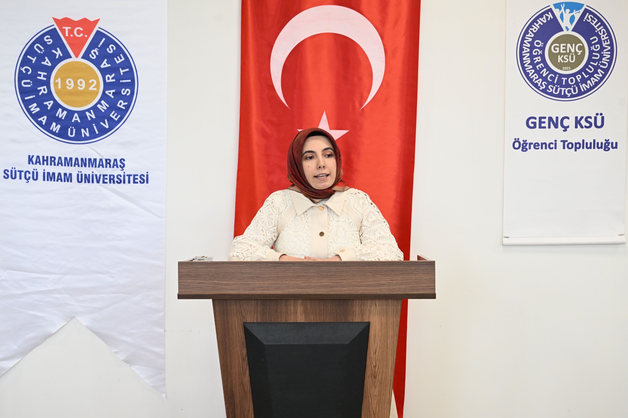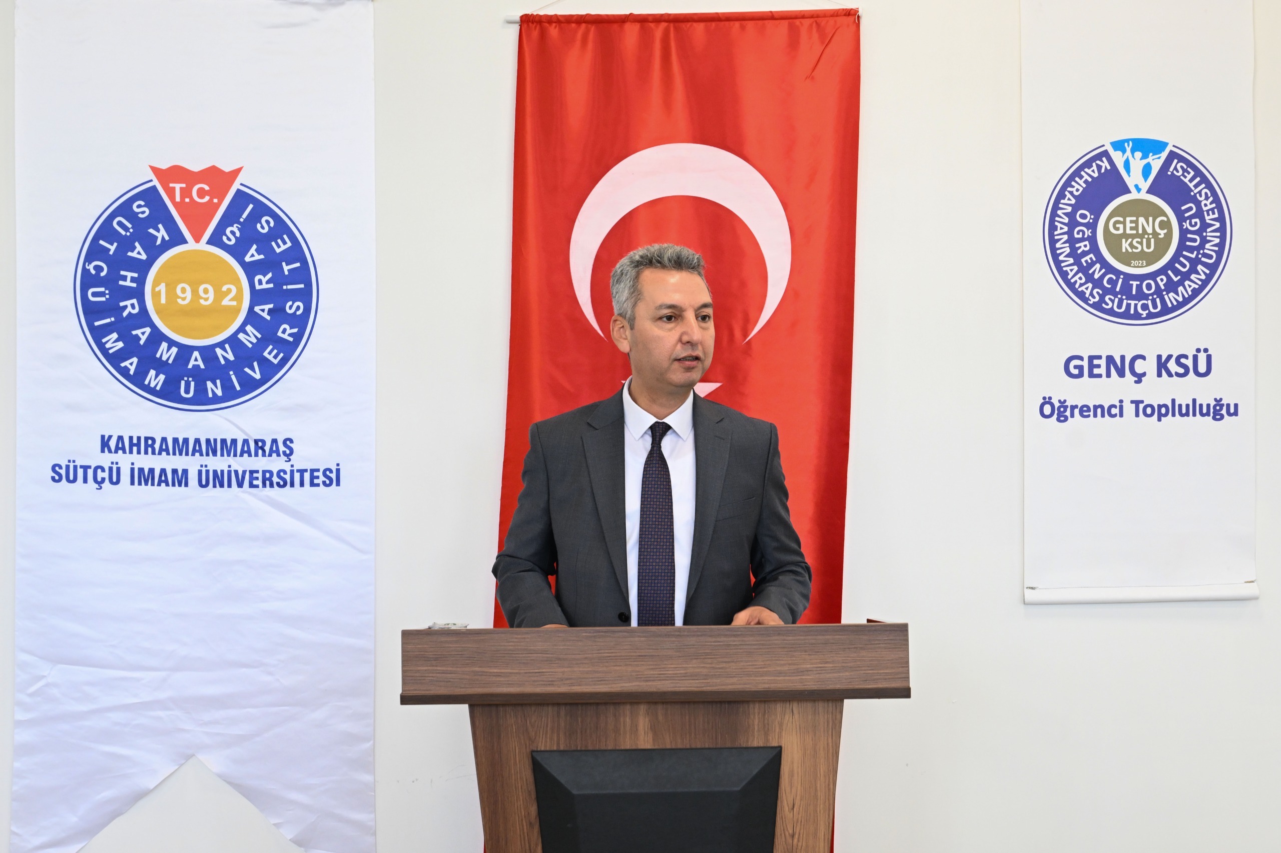 Açılış konuşmalarıyla başlayan programda ilk olarak Dr. Öğr. Üyesi Hidayet Bağcı, danışmanlığını yürüttüğü Genç KSÜ Öğrenci Topluluğunu tanıtarak yürütülen faaliyetler hakkında bilgi verdi.