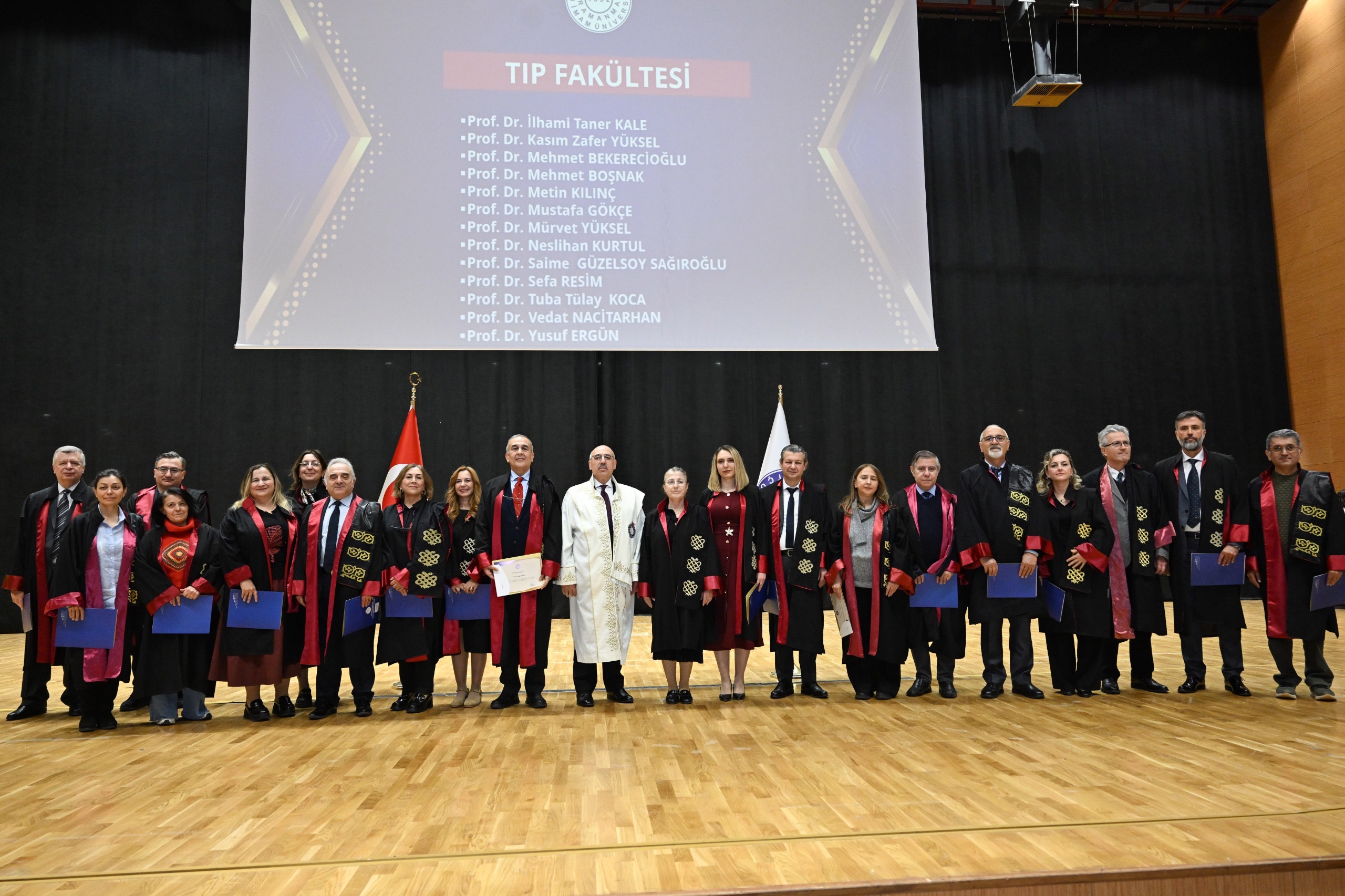 Törenin açılış konuşmasını yapan KSÜ Rektörü Prof. Dr. Mahmut Ak, üniversitenin güçlü bir akademik aile yapısını temsil ettiğini vurgulayarak, profesörlük unvanının disiplinli, planlı ve uzun soluklu bir emeğin sonucu olduğunu ifade etti. Prof. Dr. Ak, profesör unvanına sahip akademisyenlerin bilgi birikimleri, deneyimleri ve liderlik özellikleriyle üniversitenin geleceğine yön veren önemli bir beşeri sermaye olduğunu belirtti. Genç akademisyenler ve öğrenciler için rehber ve rol model olma sorumluluğuna dikkat çeken Prof. Dr. Ak, KSÜ’nün geniş akademik kadrosu ve farklı disiplinleri kapsayan birimleriyle eğitim, araştırma ve topluma katkı alanlarında nitelikli çalışmalar yürüttüğünü söyledi. Rektörlük olarak akademik çalışmalara her türlü desteği vermeye devam edeceklerini ifade eden Prof. Dr. Ak, 2025 yılı içerisinde profesörlüğe yükselen öğretim üyelerini tebrik ederek, bu sürecin üniversite adına yeni bir sinerjinin başlangıcı olduğunu dile getirdi.